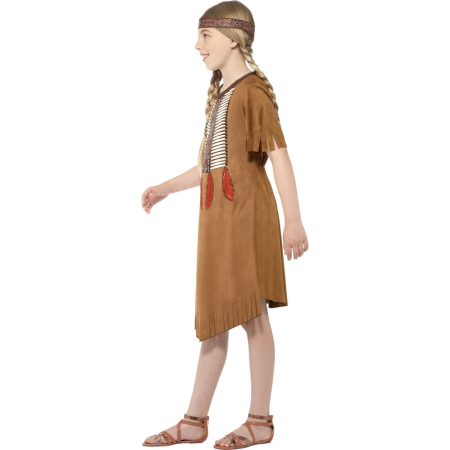 Les déguisements d'indien ne sont pas ce qui manque sur Happyfete, nous en avons un large choix car petits et grands adorent ces personnages d'une autre culture. Ce déguisement Indienne native pour fille se distingue par sa qualité avec la robe de couleur marron avec des petites rayures et une bande verticale à motifs au niveau de la poitrine, avec des franges sur les bords des manches et de la robe. Cette dernière s'accompagne d'un bandeau de la même couleur et avec les mêmes motifs que la bande verticale sur la poitrine. Pour ce déguisement, de longs cheveux sont de rigueur, des perruques sont disponibles sur le site si ce n'est pas le cas.
