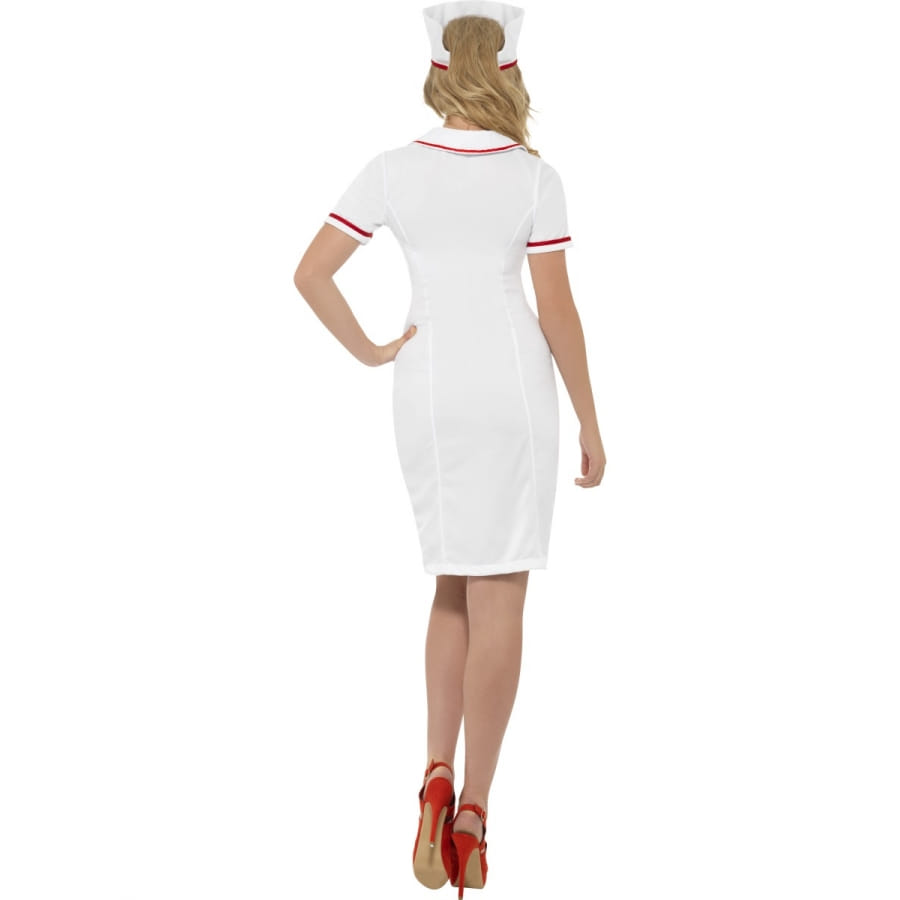 Vous serez la plus belle dans ce déguisement sexy. Vous pourrez porter ce costume pour une fête rempli de charme. Ce déguisement est composé d'une robe blanche avec des lignes rouge dessus ainsi que d'un chapeau blanc et rouge.