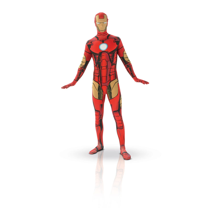 Parmi les nombreux déguisements de Iron man que vous pouvez trouver un peu partout, celui-ci est un peu spécial. Déjà, il est sous licence Iron Man et seconde peau. Il est donc seconde-peau et recouvrira tout votre corps ainsi que votre visage. Il est composé d'une combinaison imprimée, de couleur rouge et dorée, qui se ferme dans le dos avec une fermeture éclair et d'une cagoule de la même couleur qui est plus fine au niveau des yeux et de la bouche. Ce déguisement est en polyester à 89%, elasthane à 10% avec 1% de nylon. Il est également muni de semelles antidérapantes pour votre sécurité. Des pieds à la tête donc, le temps d'une fête costumée, vous deviendrez vraiment Iron Man. Les tailles que nous proposont sont le L, M et XL.