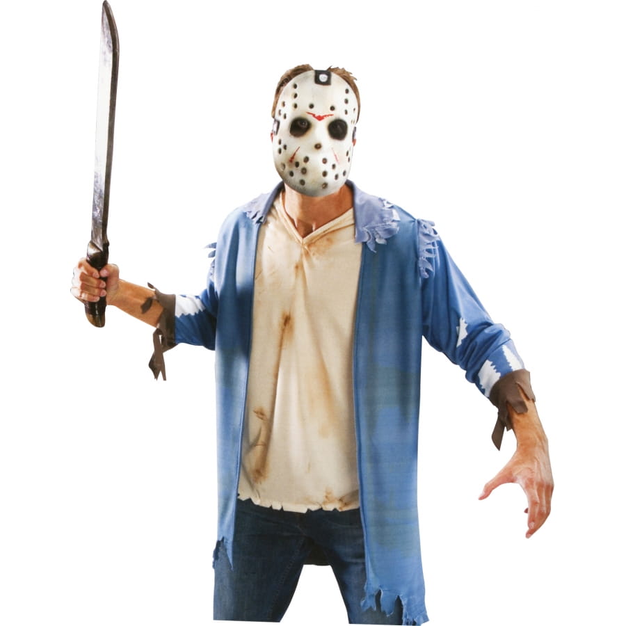 Déguisement de Jason du film "Vendredi 13" sous licence, pour homme ou adolescent, composé d'une chemise bleue cousue avec T-shirt blanc, d'une machette et d'un masque. Avec cette tenue et cette machette, vous donnerez une peur bleue à tout ceux qui croiseront votre chemin le soir d'Halloween.