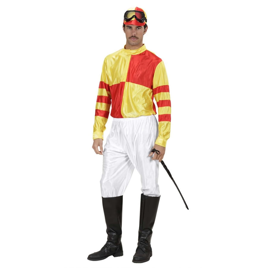 Emparez-vous de ce déguisement jaune et rouge de jockey pour un enterrement de vie de célibataire.