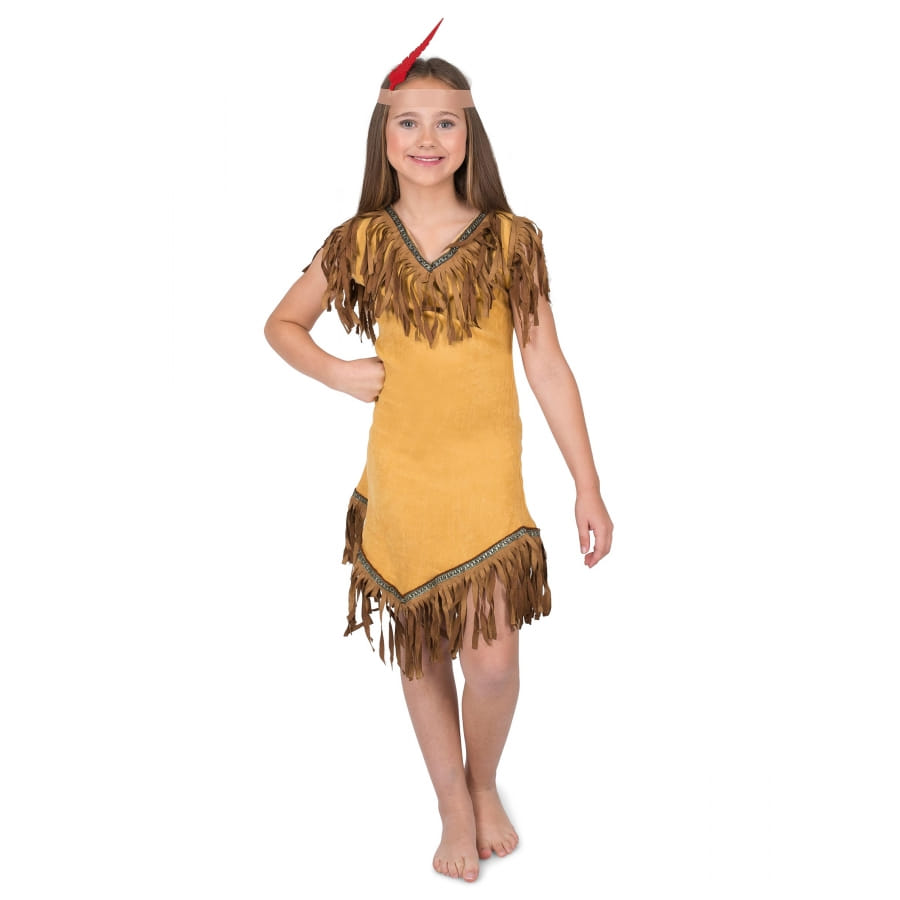 Pour une fête d'anniversaire ayant pour thème les cowboys ou les indiens, le déguisement jaune marron de petite indienne conviendrait à votre fille.