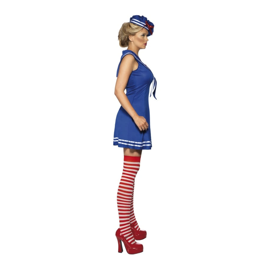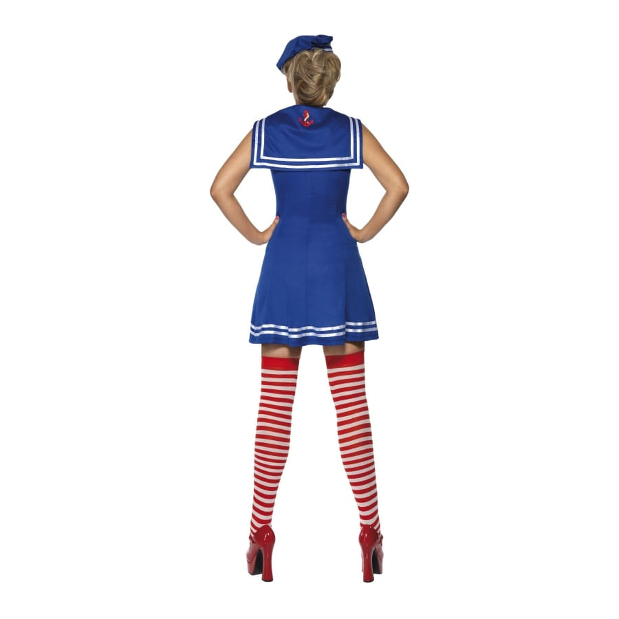 Ce costume de jolie marine vous pourrez le porter pour le carnaval ou encore une fête déguisée. Ce joli costume est composé d'une robe bleu sans manche avec un petit noeud devant. Ce costume est aussi composé d'un beret bleu avec une bande blanche ainsi qu'une paire de collant à rayure blanc et rouge.