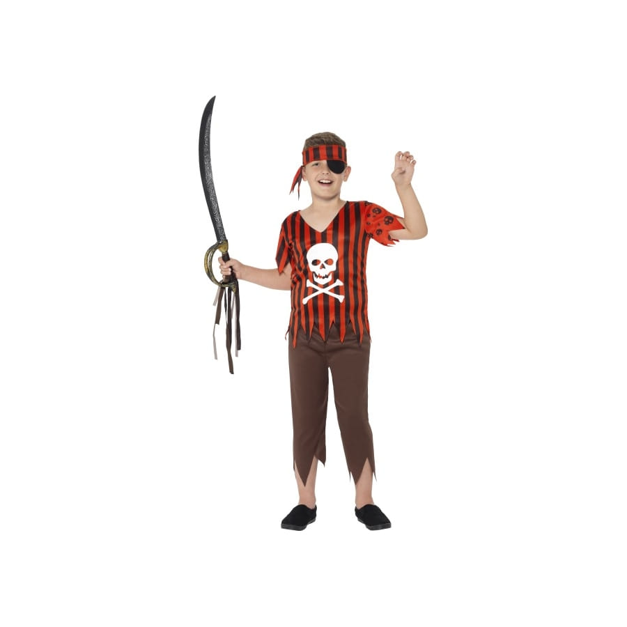 Action et aventure assurées avec ce personnage que vos enfants adorent : Jolly Rodger. Alors mettez-leur ce déguisement Jolly Rodger le pirate pour garçon, composé d'un haut à rayures rouge et noire, d'un pantalon marron à bord en lambeau et d'un bandeau noir. Les petits garçons de 4 à 6 ans, 7 à 9 ans et 10 à 12 ans ont beaucoup de chance de trouver ce déguisement à leur taille sur Happyfete. Ne vous inquiétez pas de voir autant de costumes de pirate pour enfant sur Happyfete, vos petits garnements adorent les pirates et nous le savons !