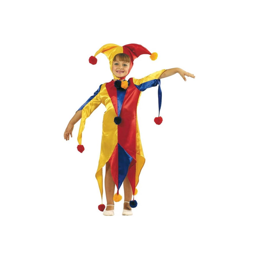Ce déguisement de jongleuse pour une petite fille de taille 116/128/164 cm est composé d'une robe et d'une coiffe multicolores. Des pompons attachés en bas de la robe, aux extrémités de la main ainsi qu'au sommet de la coiffe ajoutent une touche de folie au déguisement. Idéal pour les fêtes de théâtre, de cirque par exemple ou pour imiter le personnage de joker.