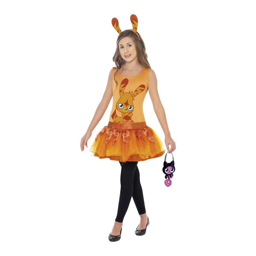Déguisement de Katsuma, pour fille, composé d'une robe tutu jaune avec un petit Katsuma imprimé dessus, d'un serre-tête avec oreilles et d'un petit sac. Accordez votre tenue à votre monstre Moshi pour votre anniversaire ou pour une occasion spéciale. Choisissez entre une taille S, M ou L au moment de la commande.