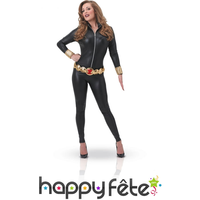 Depuis longtemps, les super héros sont très masculinisés. Et ce n'est que depuis peu que les femmes sont mises à l'honneur. La veuve noire est alors l'une des rares héroïnes qui possède les facultés physiques qu'elle est la seule à avoir, que nous connaissons tous très bien depuis son apparition dans The Avengers. Surtout parce qu'elle a été incarnée par la splendide Scarlett Johanson. Ce costume de la veuve noire que nous vous proposons a été fait pour ses fans les plus inconditionnelles. Il est composé d'une combinaison de couleur noire avec une fermeture sur le devant, une combinaison qui va avec une ceinture dorée. Avec ce costume sous licence Avengers, nous vous conseillons de porter des escarpins à talons, vous serez la plus belle des femmes de la fête. Il est disponible en taille M, S et XS.