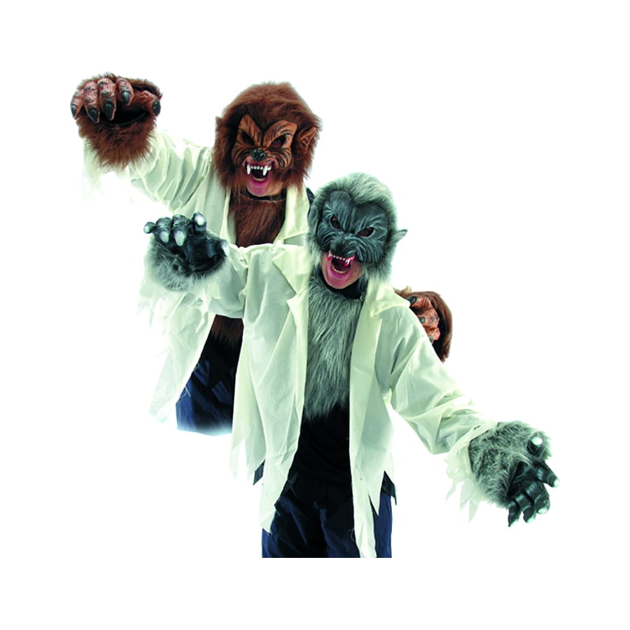 Déguisement de loup-garou, pour homme ou femme, composé d'une tunique et d'un masque. Il existe un modèle gris et un modèle brun. Les deux masques laissent découverte la moitié du visage. Au moment de votre commande, vous ne pourrez choisir ni le modèle ni la couleur des accessoires et recevrez un des deux modèles présentés. Allez en quête de chair fraîche lors de la nuit d'Halloween!
