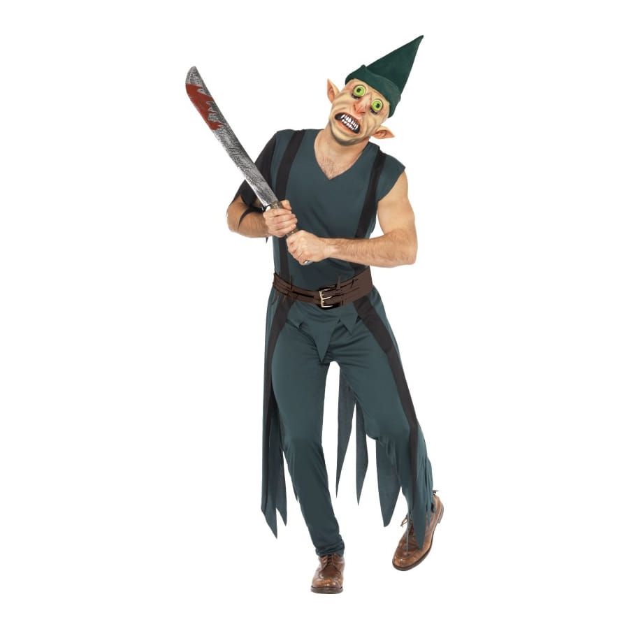Vous allez vous transformer en lutin effrayant grâce a ce déguisement qui est composé d'un chapeau pointu, d'un masque dont les yeux sort et qui montre ses dents, d'un top , d'un pantalon et d'une ceinture. Le tout est de couleur bleu et gris. Vous pourrez porter ce déguisement pour Halloween ou encore pour le carnaval.