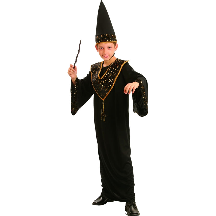 Votre fils sera le plus redoutable des magiciens dans ce déguisement. Il pourra le porter à une fête comme sorcellerie ou magie. Il lancera des abracadabra tout le long de la fête, ce déguisement est de taille 7 à 9ans. Il est composé d'une coiffe noir avec une bordure doré ainsi que d'une longue robe, manches longues avec des bordures dorées sur les bords et le col est doré.