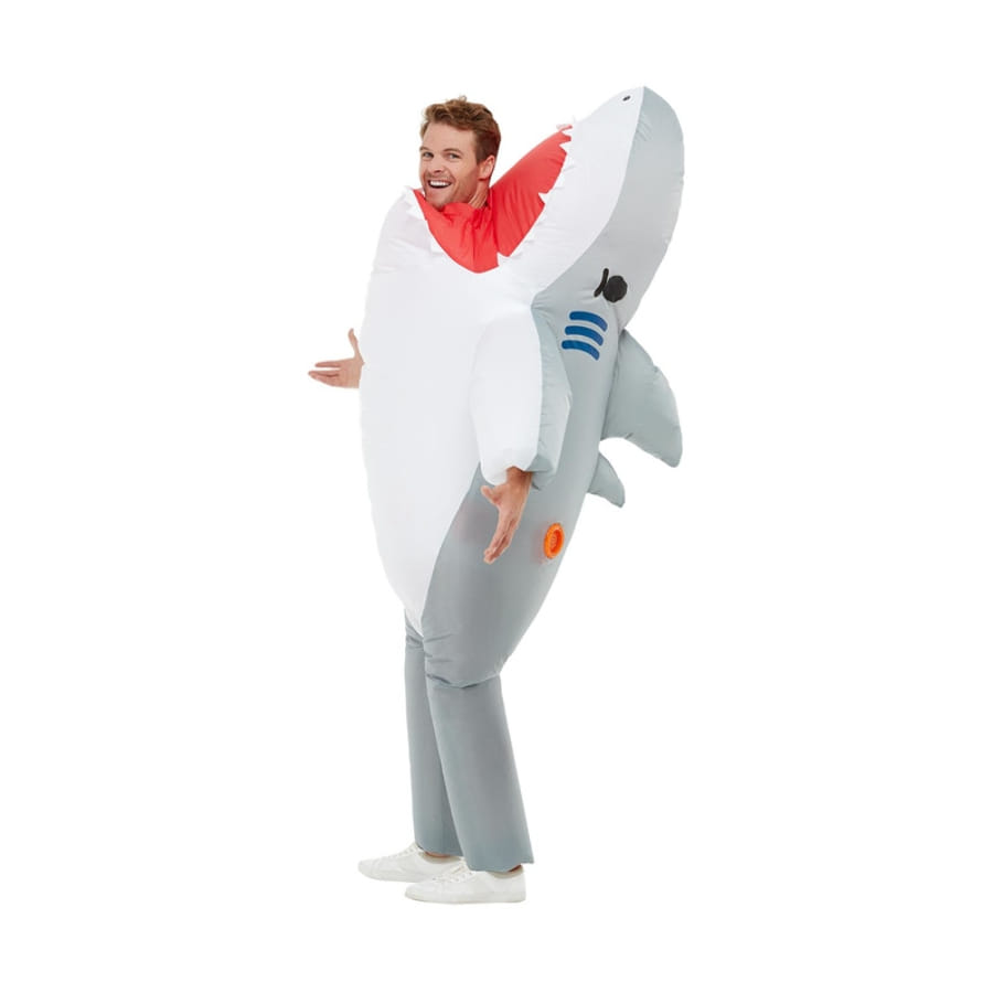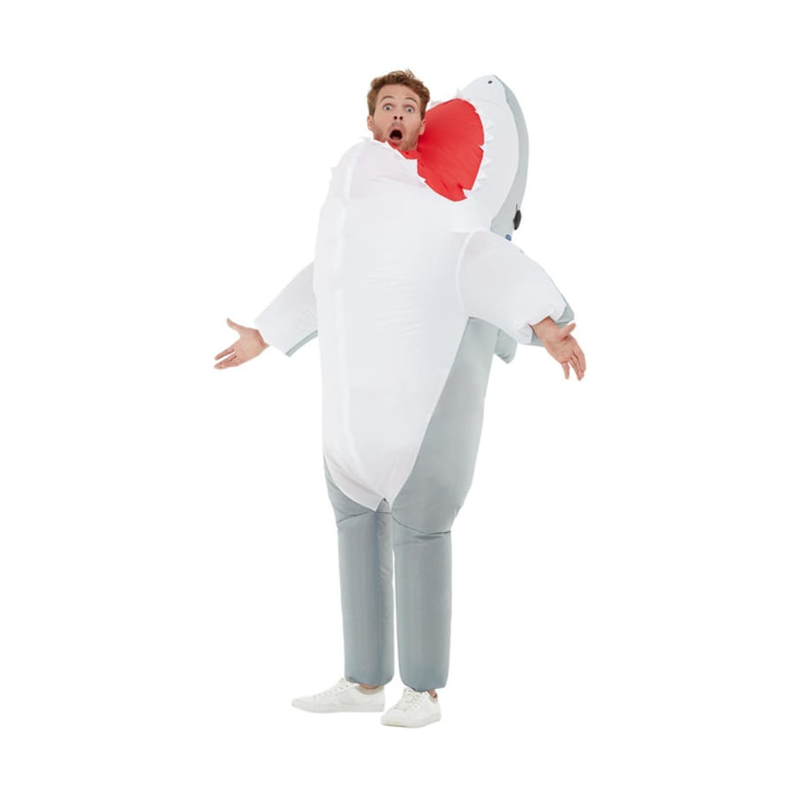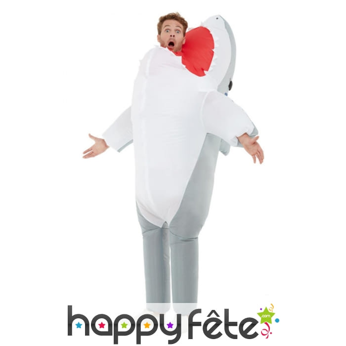 Avec sa grande combinaison grise et blanche gonflable automatiquement grâce à un ventilateur, ce déguisement vous conviendra peu importe votre taille.