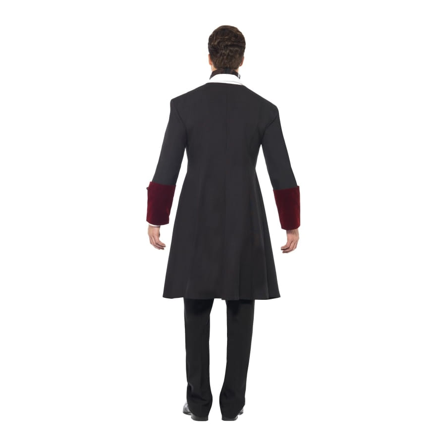 Déguisement de vampire "Fever" gothique, pour homme, composé d'un manteau noir, d'un faux gilet rouge et d'une cravate noire. Le tout est disponible en taille S, M ou L. Incarnez un vampire chic et élégant du XVIIe siècle.