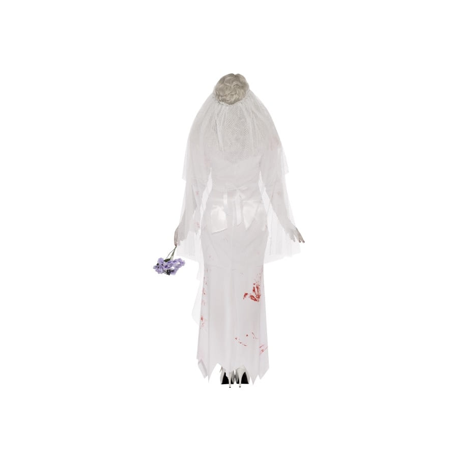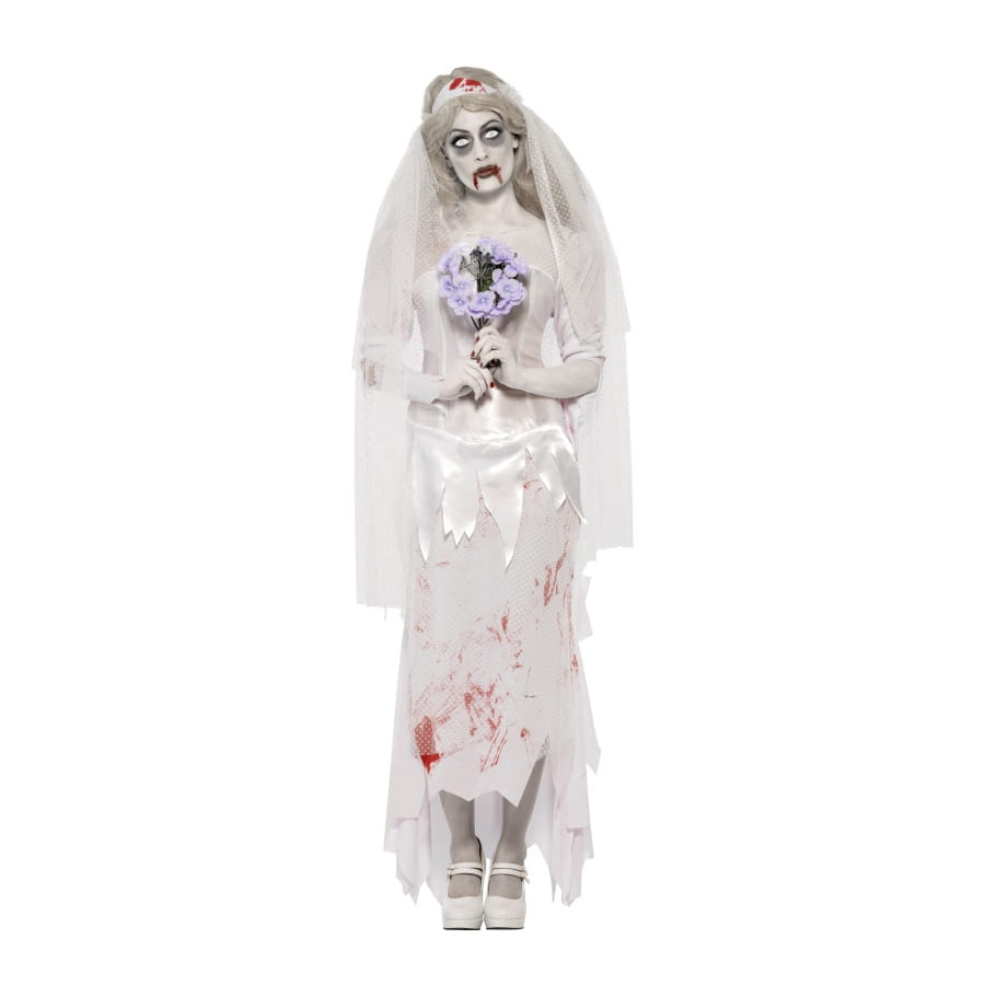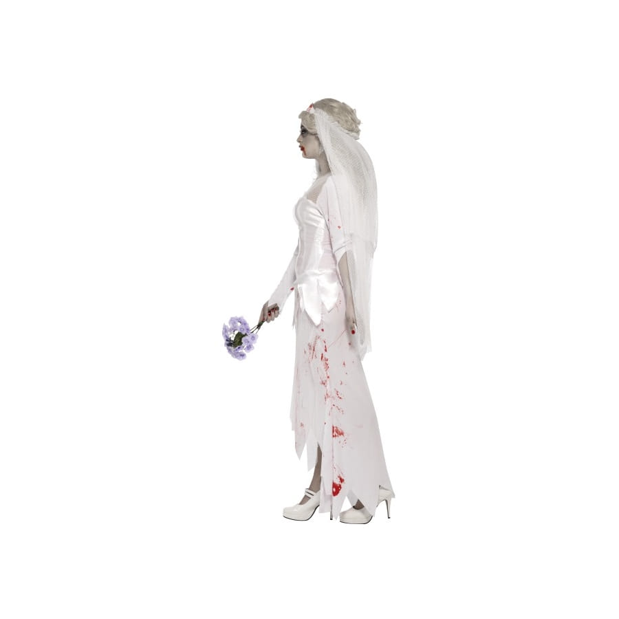Si votre but est d'effrayer toute personne essayant de s'approcher de vous, ce déguisement sera parfait. Ce costume de mariée zombie, pour femme, comprend une robe blanche, une voile ainsi qu'un bouquet. Pour un effet plus sanglant, la robe et le voile sont tous deux tâchés de sang. Avec le maquillage approprié, vous deviendrez une parfaite mariée mort-vivante.