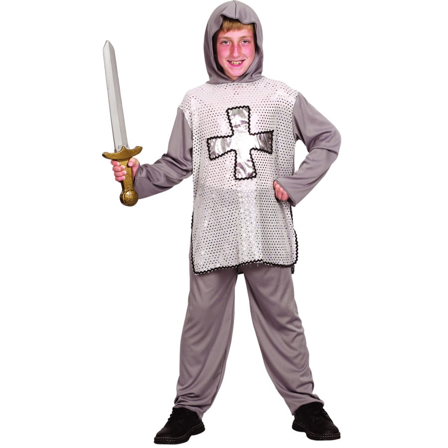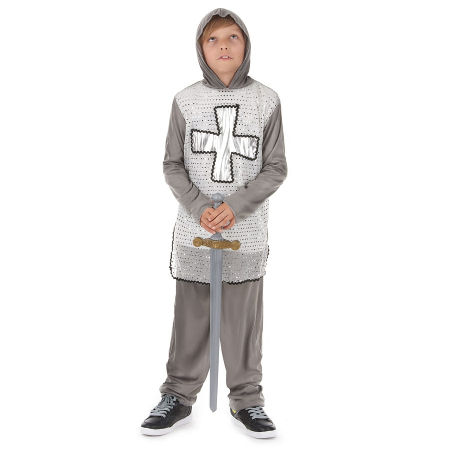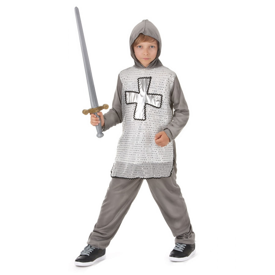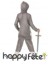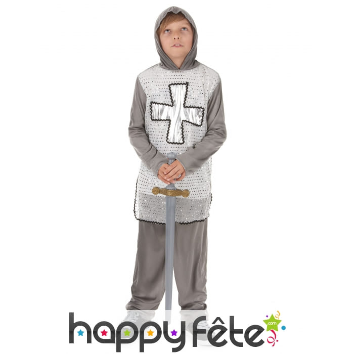 Nous vous faisons découvrir ce déguisement gris argent de petit chevalier pour garçon.