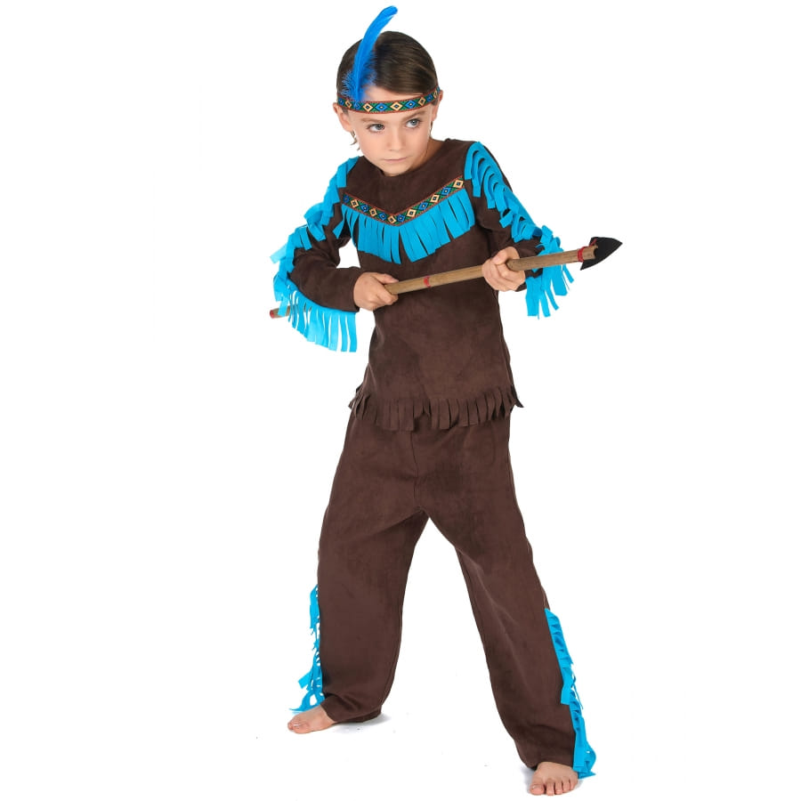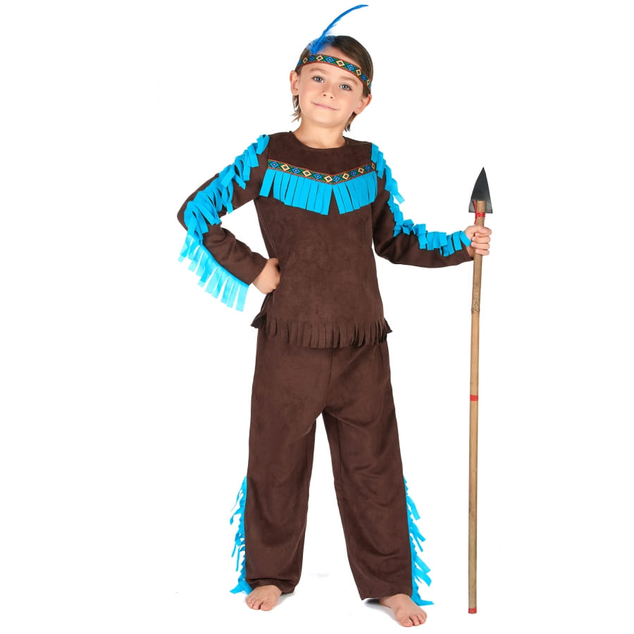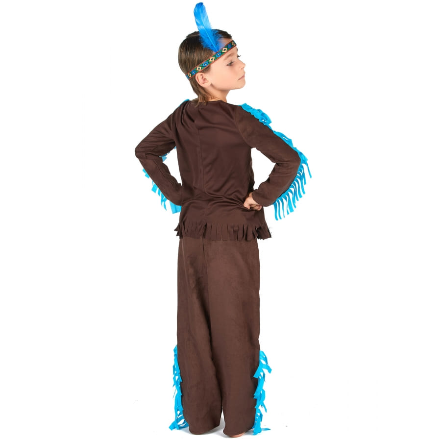 Parfait pour représenter le fils d'un chef indien d'une tribu importante lors d'une soirée à thème Far West, ce déguisement marron bleu de petit Indien vous donnera le respect et la loyauté des membres de la tribu.