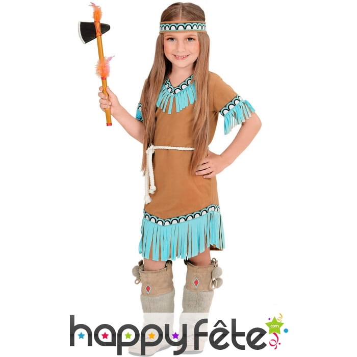 Votre fille deviendra la belle Pocanhontas ou choisira elle-même sa tribu indienne préférée, avec notre déguisement marron bleu de petite indienne.