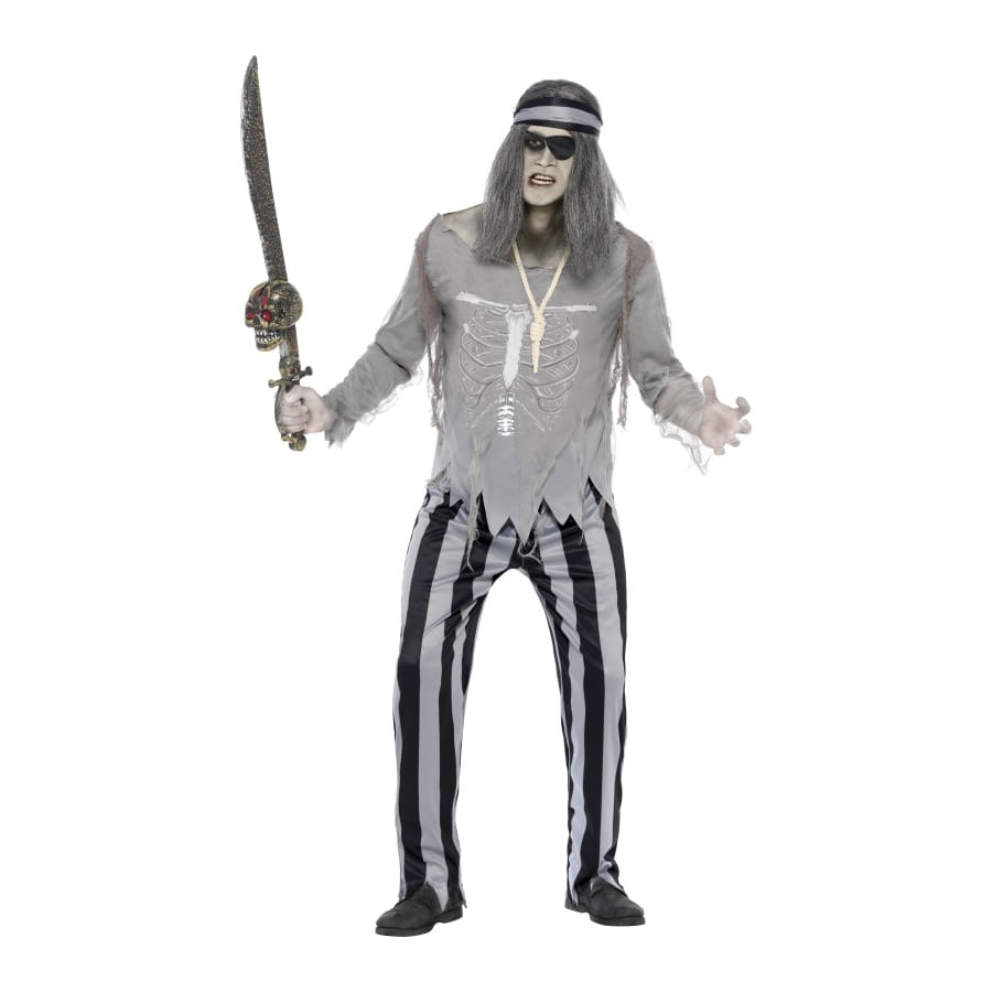 Pour une soirée déguisée vous pourrez vous incarnez en matelot fantôme ou encore pour Halloween vous pourrez mettre ce costume. Il est composé d'un top gris manche longue, d'un pantalon gris et noir ainsi qu'un bandeau noir.