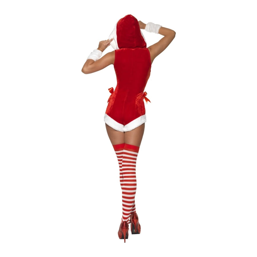 Ce costume de mère noël est fait pour vous, si vous voulez changer de style pour la noël, ou encore incarner une mère noël rempli de sensualité et de charme. Le costume est une combinaison de couleur rouge et blanc avec chapeau de la même couleur ainsi que de bracelet blanc.