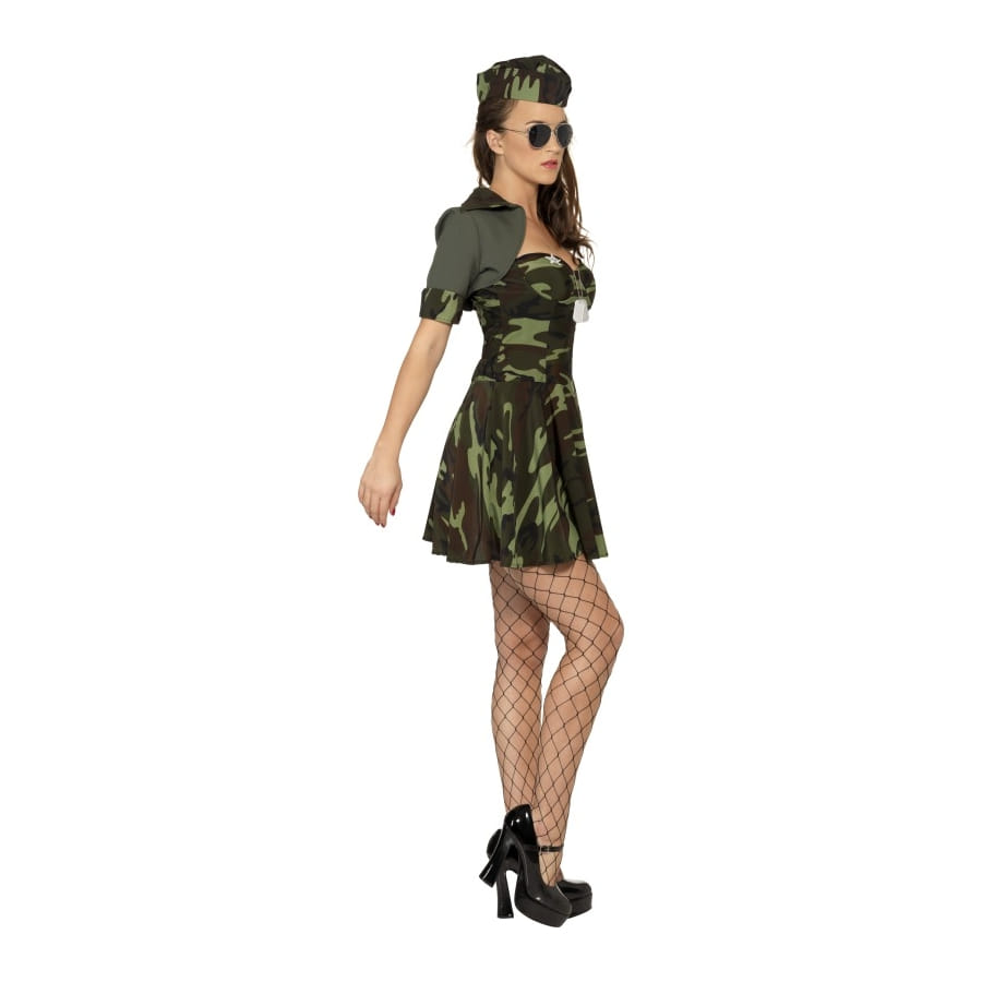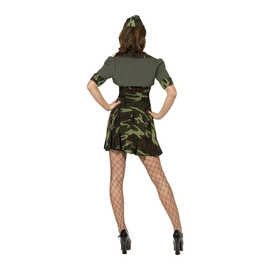 Ce déguisement militaire vous pourrez le porter pour une fête ayant pour thème uniforme, ou encore si vous voulez vous métamorphoser en soldat. Il est composé d'un chapeau, d'une épaulière et d'une robe courte. Le tout est de couleur vert et noir.