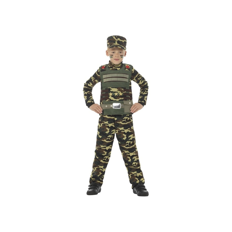 Garde-à-vous soldat ! Une nouvelle mission remplie d'action et d'aventure attend votre petit garçon. Pour la mener à bien, il faudra l'équiper de ce déguisement militaire camouflage pour enfant. Votre petit guerrier en herbe disposera d'un pantalon militaire de couleur vert armée et d'un haut à manches longues de couleur assortie. Il portera aussi une casquette militaire. Ce modèle a été conçu en plusieurs tailles différentes, pour les petits garçons de 4 à 12 ans. Vous n'aurez pas de mal à trouver le jouet adéquat pour compléter ce déguisement. Une multitude d'armes de guerre est disponible dans la section accessoire de notre site. En étant aussi bien équipé, votre enfant pourra facilement intégrer le rang des officiers militaires.