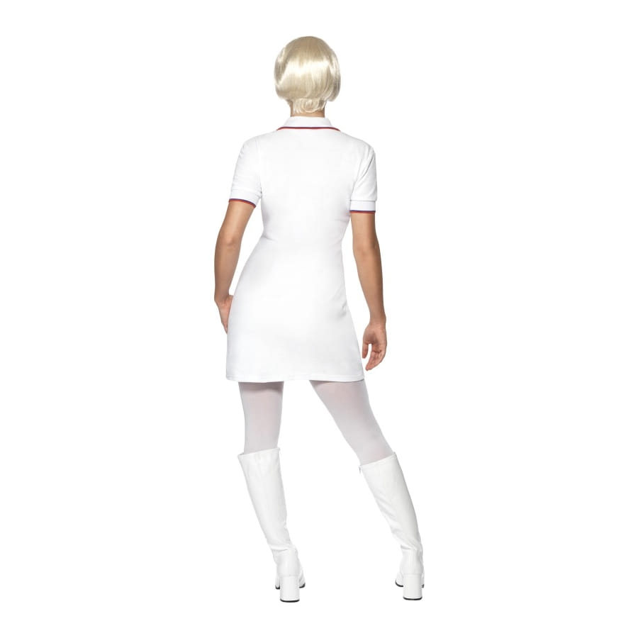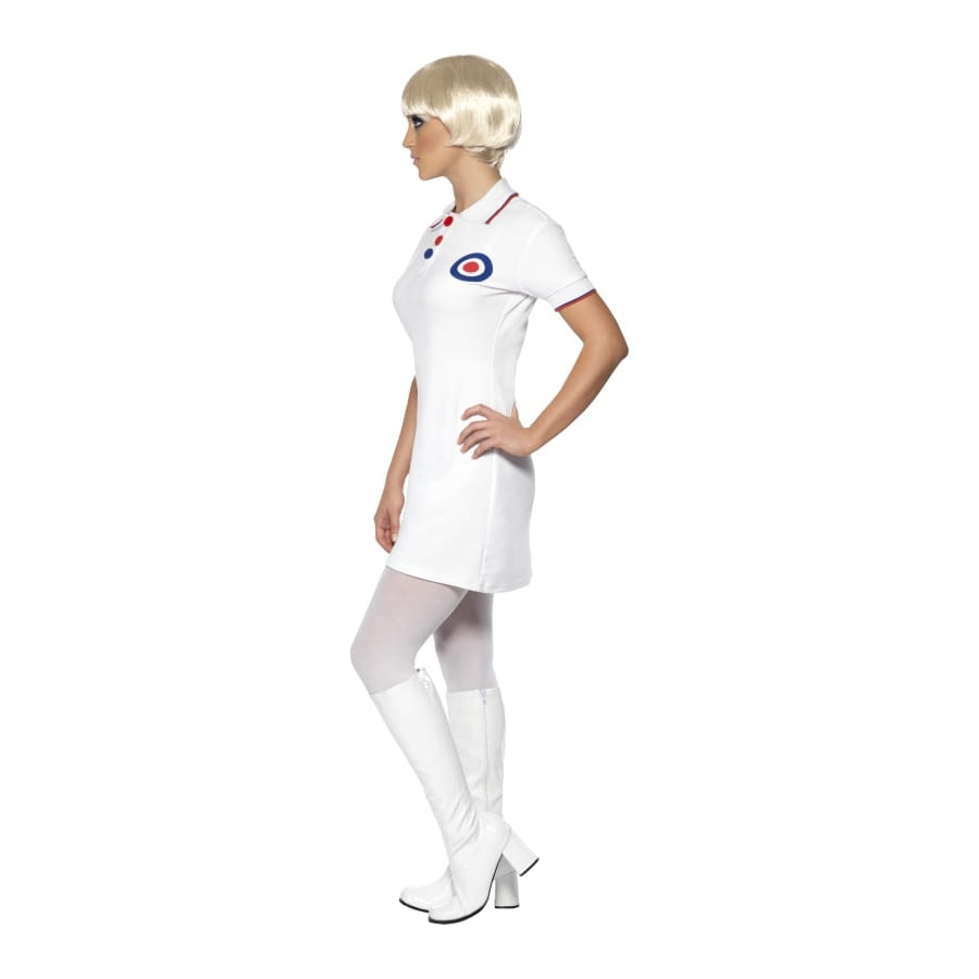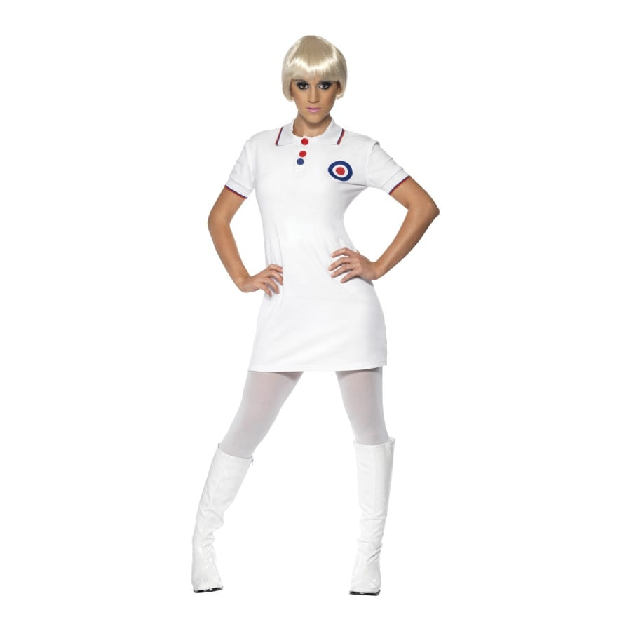 Déguisement de femme militaire britannique composé d'une robe blanche avec badge militaire rouge et bleu. Cet ensemble est disponible en taille S, M ou L. Ajoutez-y des bas ou des bottes blanches pour compléter votre look de femme soldat.