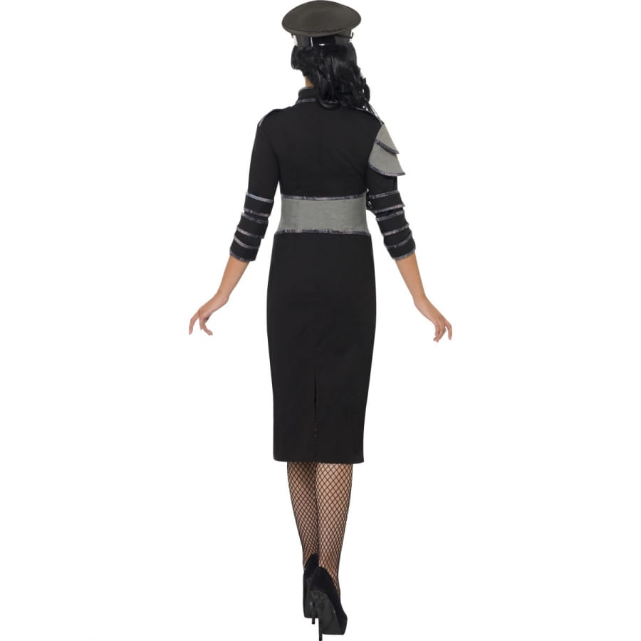 Un costume militaire punk vous pourrez le porter pour incarner une militaire sexy ou durant le carnaval et même durant un enterrement de vie de jeune fille. Ce costume militaire punk est une robe de couleur gris et noir, manche mi long, il y a des chaînes sur le devant de la robe.