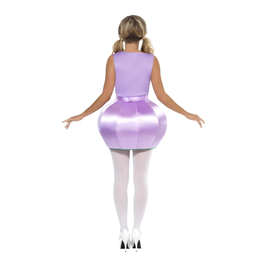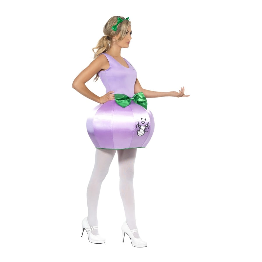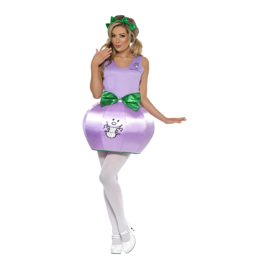 Déguisement de Miss Vilaine, pour femme, composé d'une robe de couleur violette à jupon bouffant et énorme noeud de décoration vert. Elle est disponible en taille S, M ou L. Enfilez ce déguisement pour un enterrement de vie de garçon ou de jeune fille.
