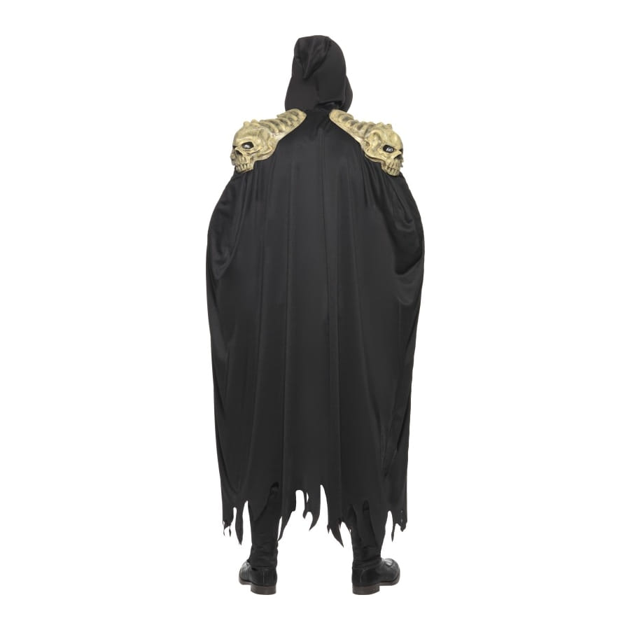 Déguisement de moissonneur d'âme pour homme ou adolescent, composé d'une tunique grise, noire et verte, d'une cape assortie, d'un masque noir et d'un torse en latex. Incarnez un des personnages les plus terrifiants d'Halloween!