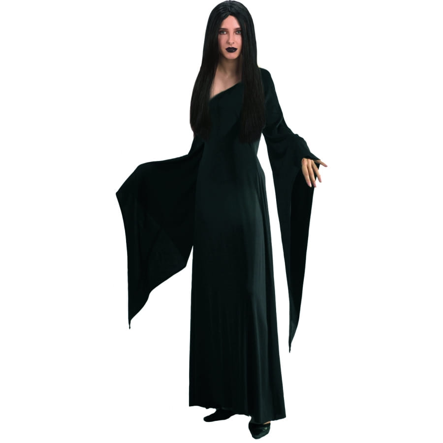 Déguisement Morticia, pour femme ou adolescente, sous licence de la Famille Addams, composé d'une longue robe noire à manches évasées. Cet accessoire est disponible en taille 38-40, 42-44 ou 46-48. Grâce à cette robe, vous deviendrez une beauté fatale et gothique pour Halloween.