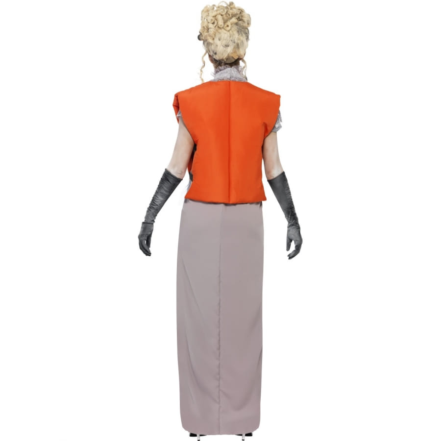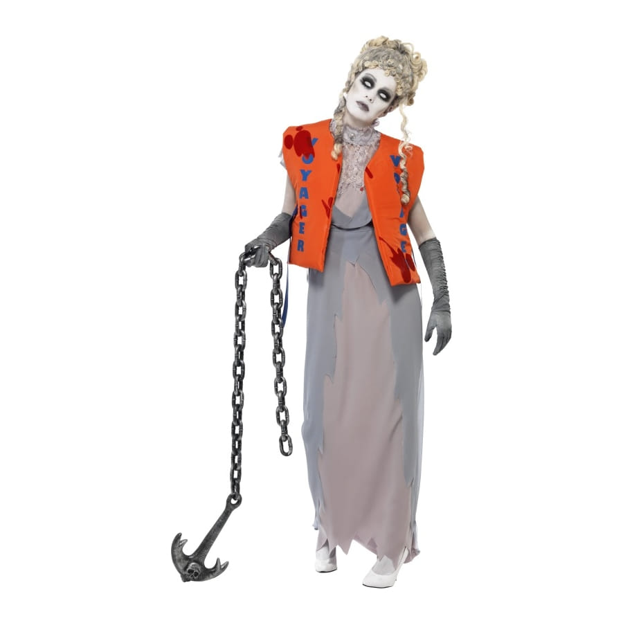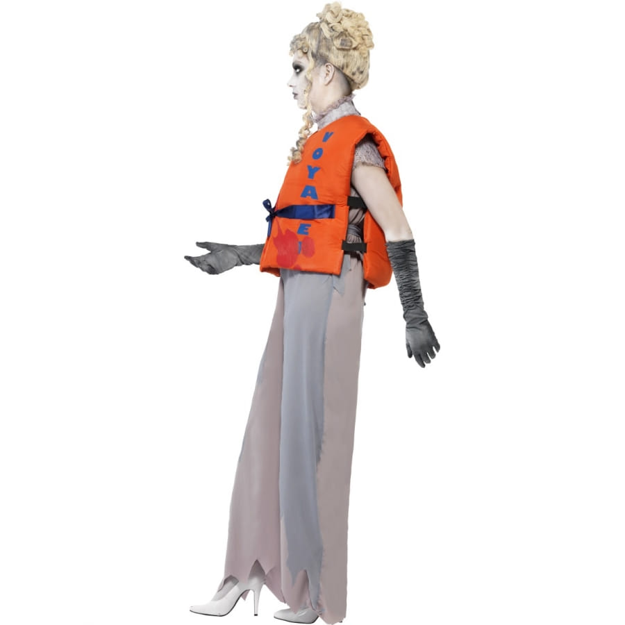 Déguisement de naufragée zombie, pour femme, composé d'une longue robe grise et d'un gilet de sauvetage orange. Ces deux accessoires sont disponibles en taille S, M ou L. Ils serviront à vous faire passer pour une morte-vivante noyée sur un vieux navire.