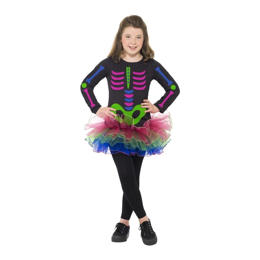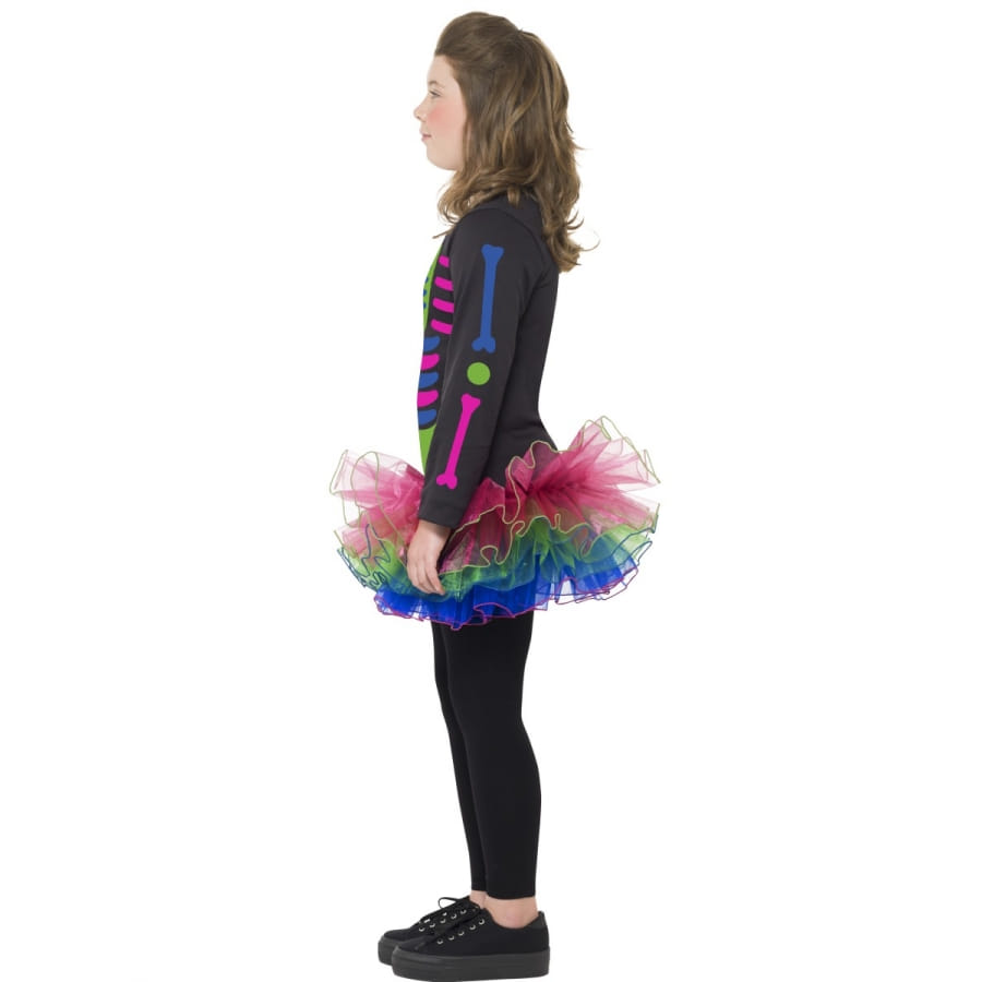 Un déguisement de néon squelette pour enfant. Ce magnifique déguisement votre enfant pourra le porter à plusieurs reprise comme une fête pour un gouter d'anniversaire, ou encore pour Halloween. Il est composé d'une robe noire avec tutu, sur la robe il y a le dessin d'un squelette en néon.