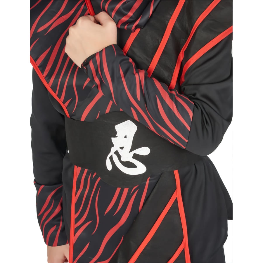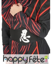 Mais un ninja sans son armure ? Inconcevable ! Voici donc le plastron, noir et rouge, qui assure protection et style. Sans oublier la ceinture, également noire, ornée d'un signe chinois blanc, qui viendra maintenir le tout avec son large scratch.