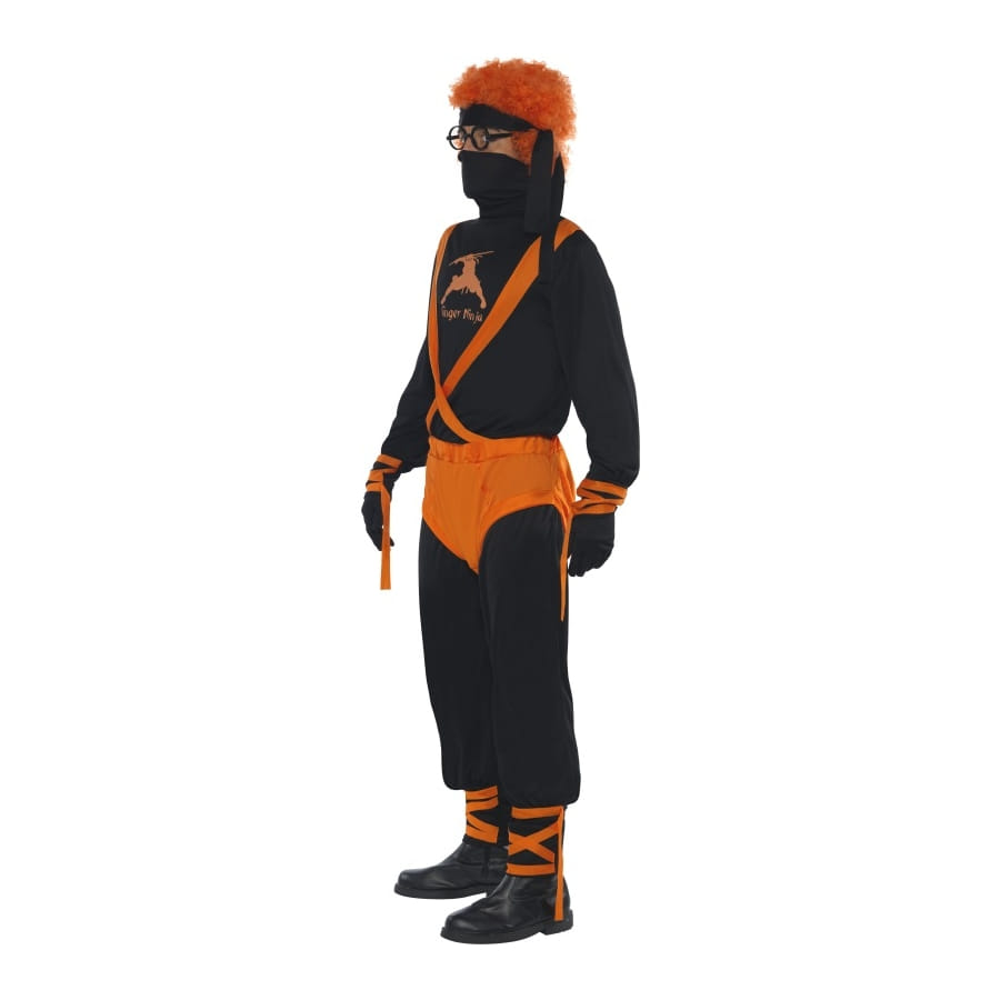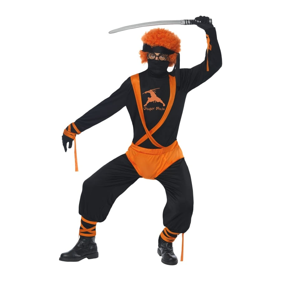Pour le carnaval métamorphosez vous en ninja. Ce costume de ninja est composé d'un top manche longue, d'un pantalon noir et d'un masque qui couvre une partie du visage. Il est de couleur orange et noir de taille L ou M.