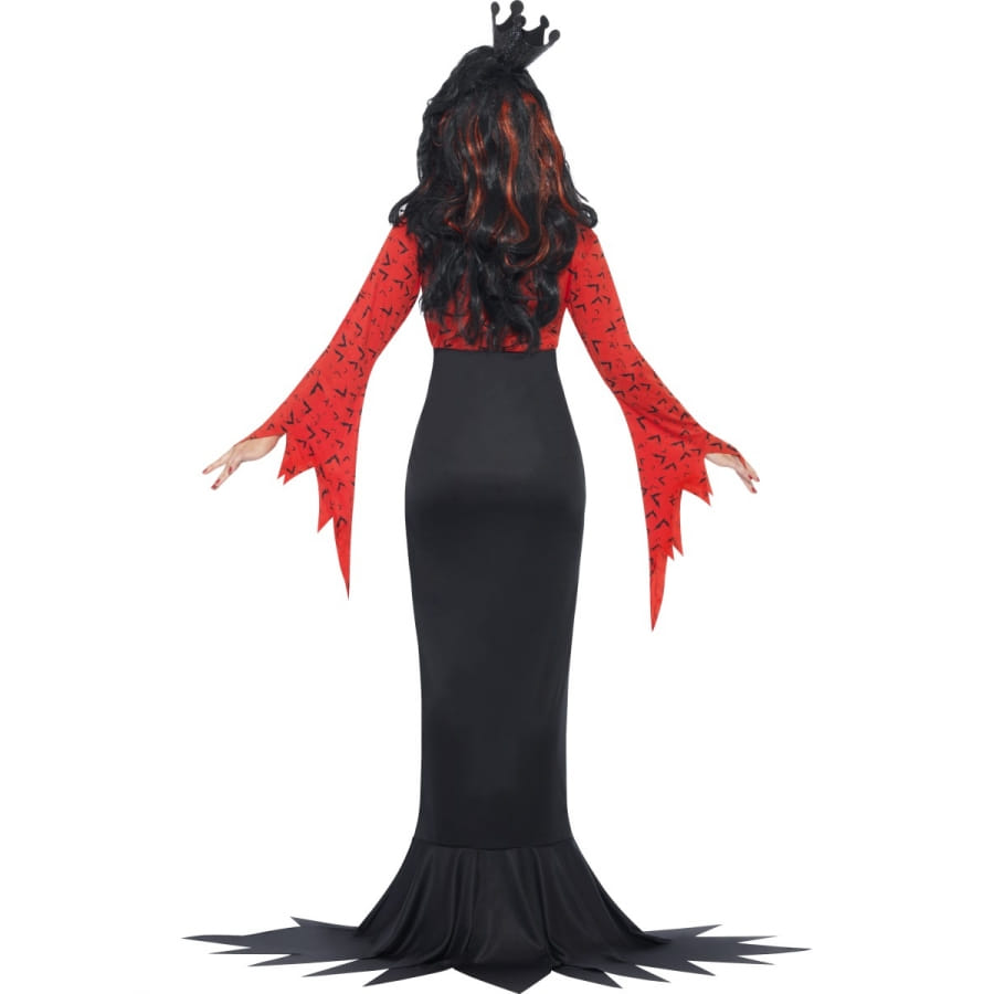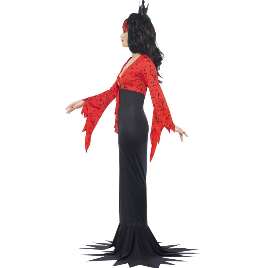 Un déguisement de reine diablesse, pour Halloween vous serez a la fois élégante et belle dans ce déguisement de diablesse. Il est composé d'une robe de couleur noir et rouge, le haut de la robe est rouge avec des motifs noir manche longue,le bas de la robe est noire avec fendu.