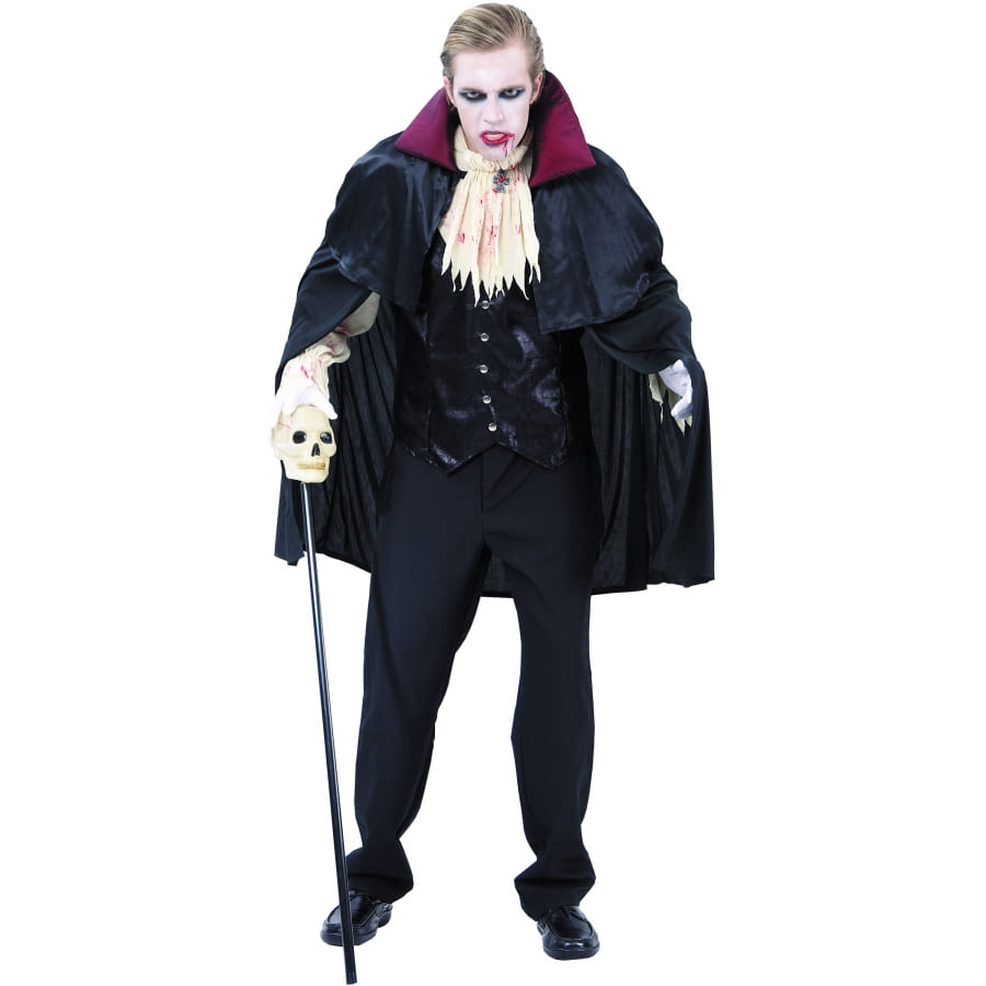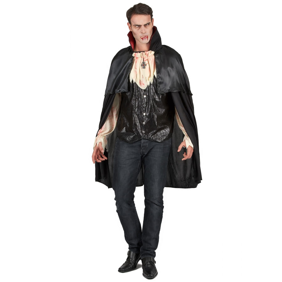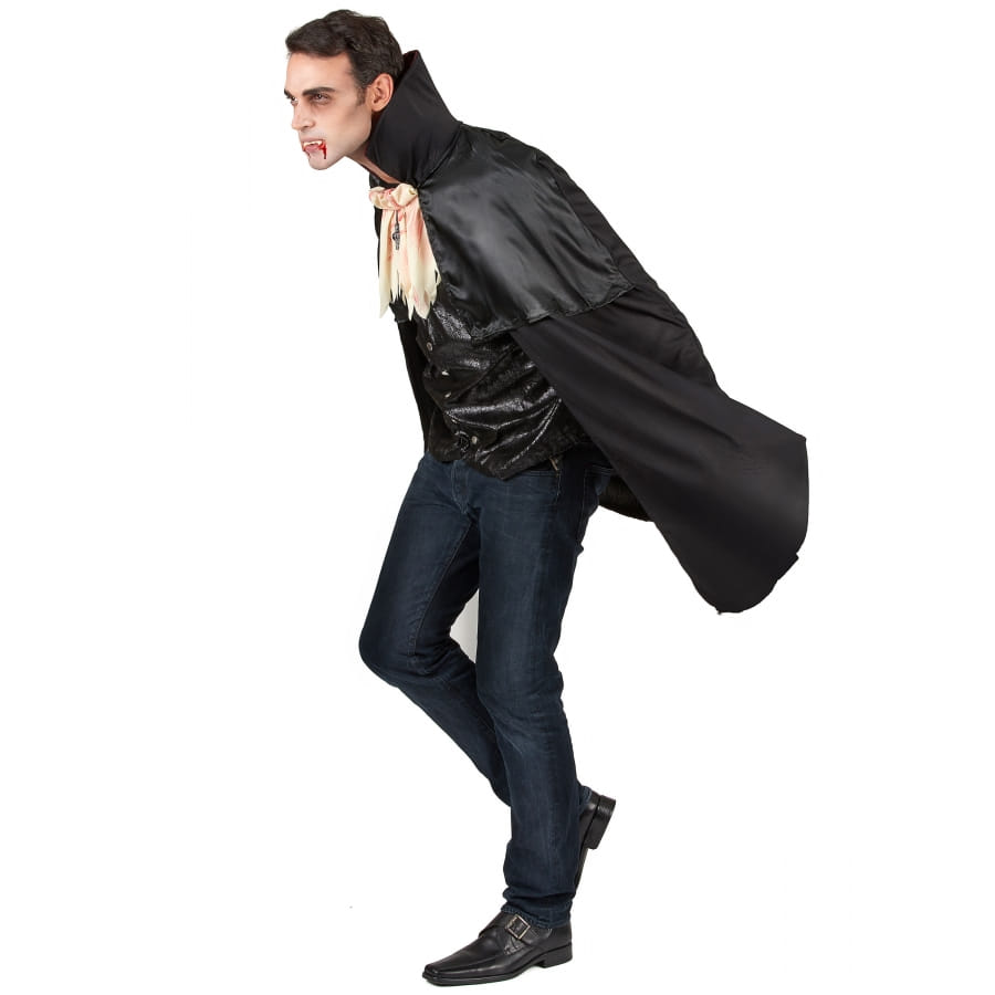 Le déguisement noir satiné de vampire avec cape est le déguisement qu'il vous faut messieurs, pour faire sensation pendant la fête des morts.