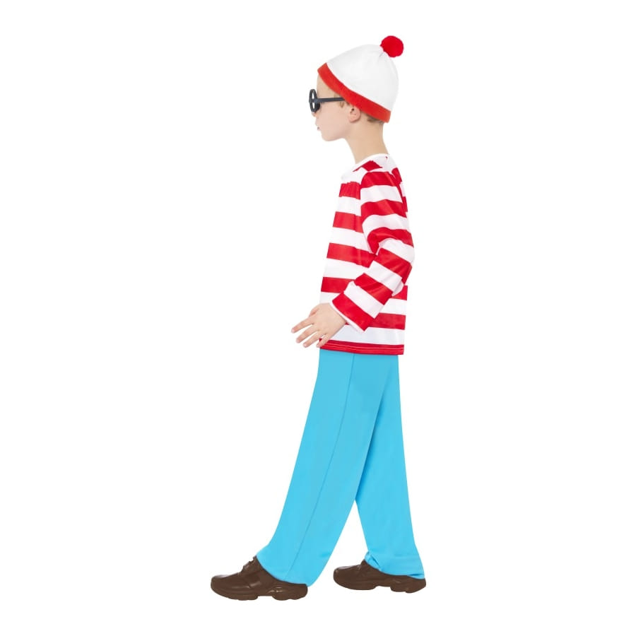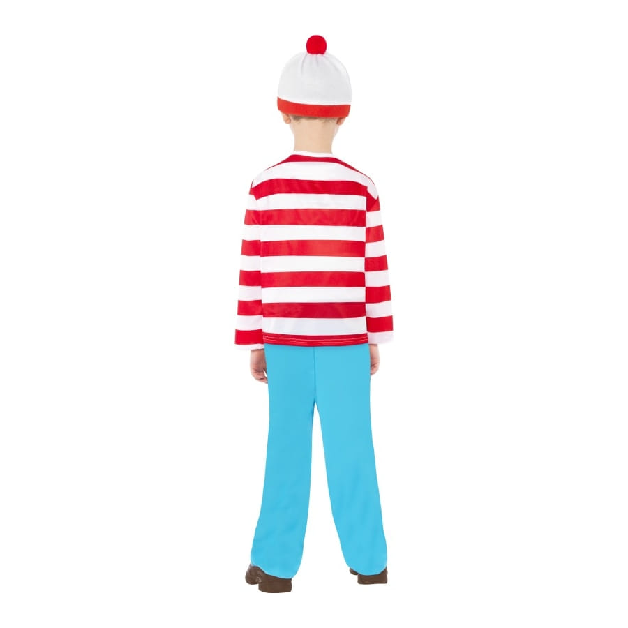 Déguisement "Où est Charlie?" sous licence, pour enfant, composé d'un top à rayures blanches et rouges, d'un pantalon bleu, de lunettes noires et d'un bonnet assorti à votre top. Le tout est disponible en taille S, M ou L. Cachez-vous et laissez vos amis vous chercher!