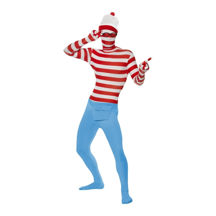 Un costume de ou est Charlie. Ce costume est une seconde peau qui couvre complètement le corps. Ce déguisement seconde peau est de couleur bleu, rouge et blanc. Vous pourrez le porter pour une fête ayant pour thème dessin animé.