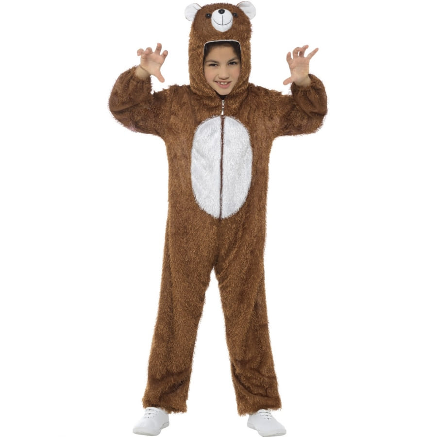 Déguisement d'ours, pour enfant, composé d'une combinaison brune avec ventre blanc ainsi que d'une tête d'ours assortie. Ce déguisement donnera à votre gamin un air d'ours calineux.