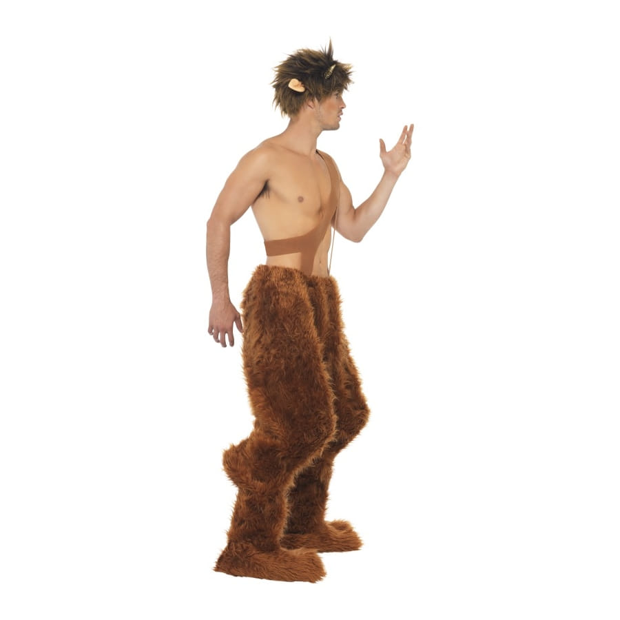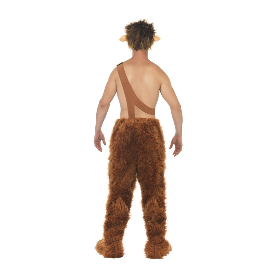 Déguisement du dieu grec Pan de couleur brune, pour homme, composé d'un pantalon en peluche avec bretelles, d'une paire de surchaussures et d'une coiffe. Cet ensemble est entièrement fabriqué en polyester. La coiffe comporte des oreilles. Il sera idéal pour une fête basée sur la Mythologie grecque.