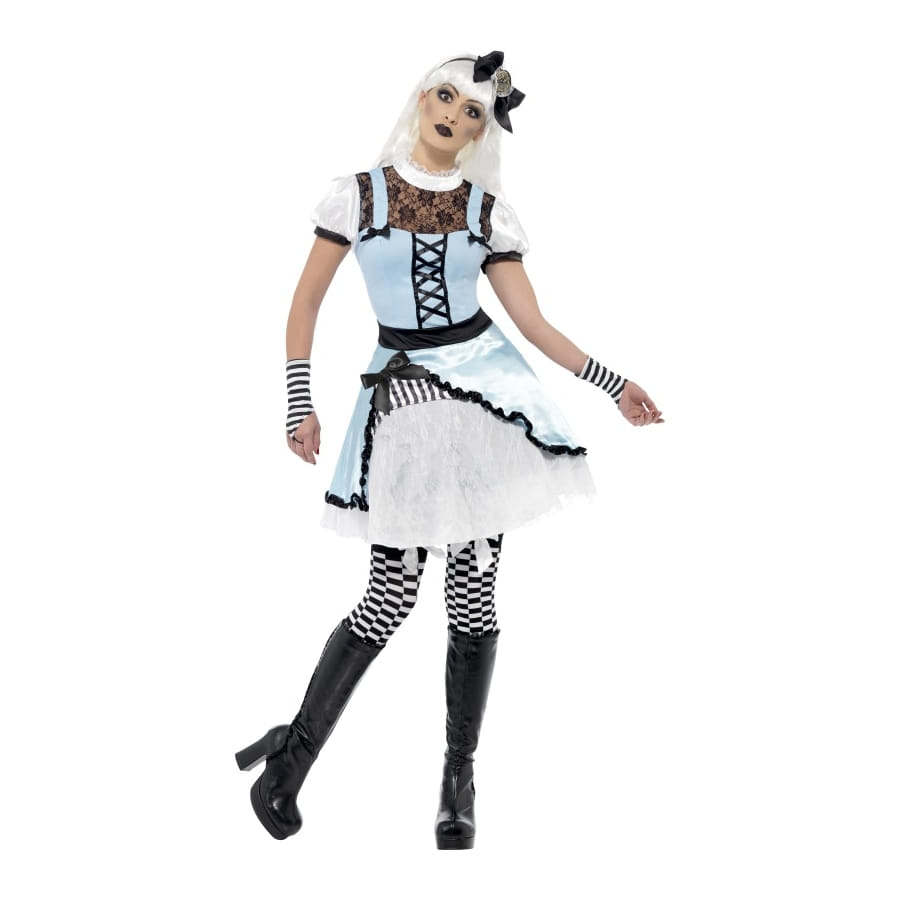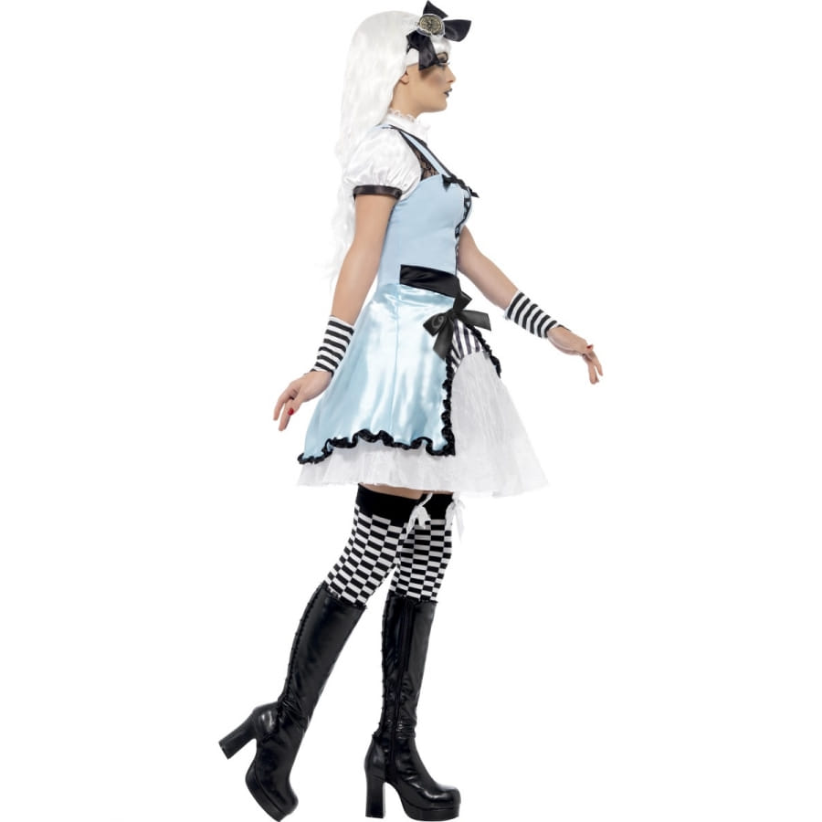 Un costume de pays magique, ce magnifique costume est composé d'une robe de couleur blanche, bleu et noire. La robe manche ballon de couleur blanc avec une bordure noire. Il est aussi composé de gants de couleur noir et blanc et d'un serre-tête avec un nœud dessus.