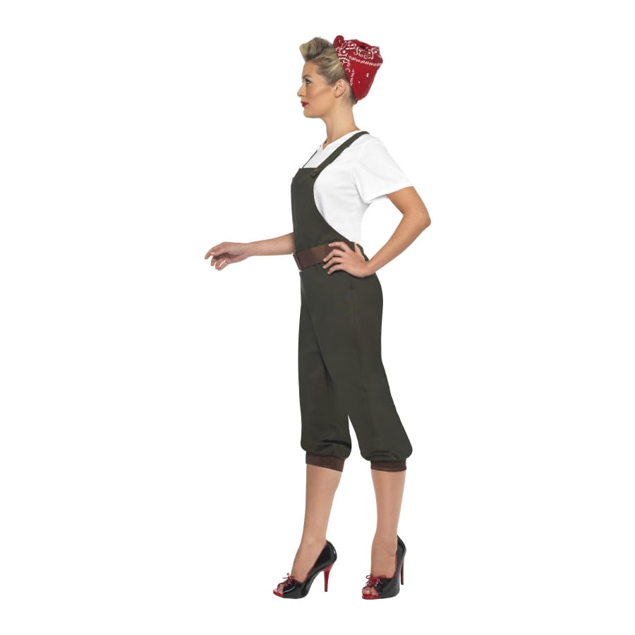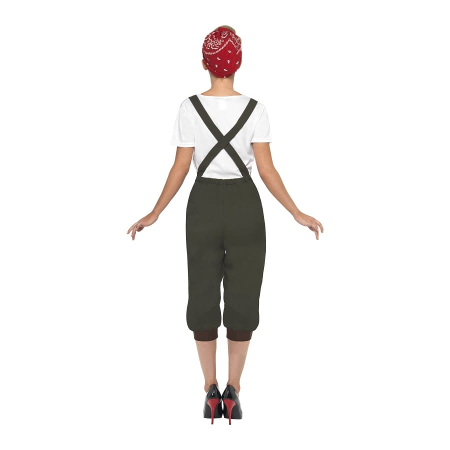La vie est difficile en période de guerre ! Interprétez le rôle d'une paysanne de la 2ème guerre mondiale lors de la fête nationale, afin de symboliser le dur labeur des femmes en ces temps là. Ce déguisement vous propose un haut classique, accompagné d'une salopette de couleur verte, ainsi que d'un foulard à fixer sur vos cheveux, comme sur l'image. Vous n'aurez plus qu'à vous dénicher une bêche et le tour est joué ! A noter que les couleurs sont inaltérables, et que cet ensemble pour femme se nettoie à sec uniquement. Il doit être tenu loin du feu. Vous aurez un large choix sur la taille, car le costume existe en L, M, S, X1 et X2.
