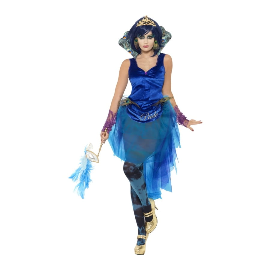 Déguisement inspiré des sept péchés capitaux, notamment celui de l'orgueil. Ce set compren une robe et un grand col. Pour bien accentuer le côté fier de ce déguisement, la robe est de couleur bleue avec des plumes de paon assorties au col. Jouez la carte de la fièreté avec ce superbe déguisement.