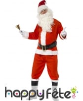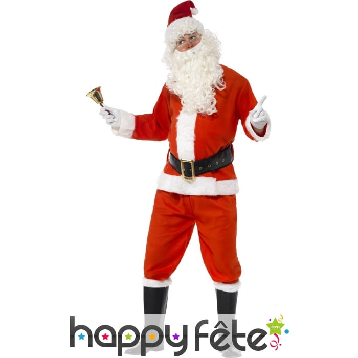 Déguisement de Père Noël adulte composé d'une veste, d'un pantalon, d'une ceinture, d'un chapeau, de gants et de couvre-bottes. L'ensemble varie entre le blanc et le rouge avec des rebords en marabout, sauf pour les bottes et la ceinture, qui sont tous deux noires. Faites votre choix entre une taille M, L ou XL. Vivement la Noël!