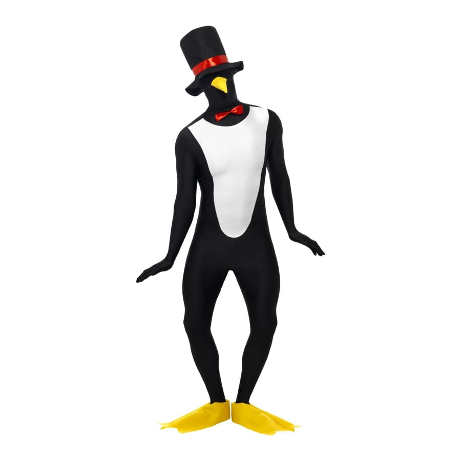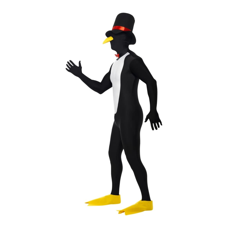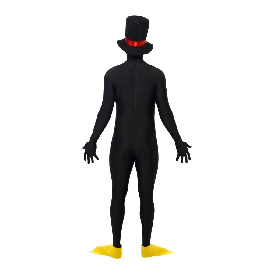 Déguisement de pingouin, pour homme ou femme, composé d'une combinaison seconde peau de couleur noire et blanche, d'un chapeau noir avec ruban rouge, d'un bec jaune, d'un noeud papillon rouge et de surchaussures jaunes. Transformez-vous en pingouin serviteur pour une soirée à thème.
