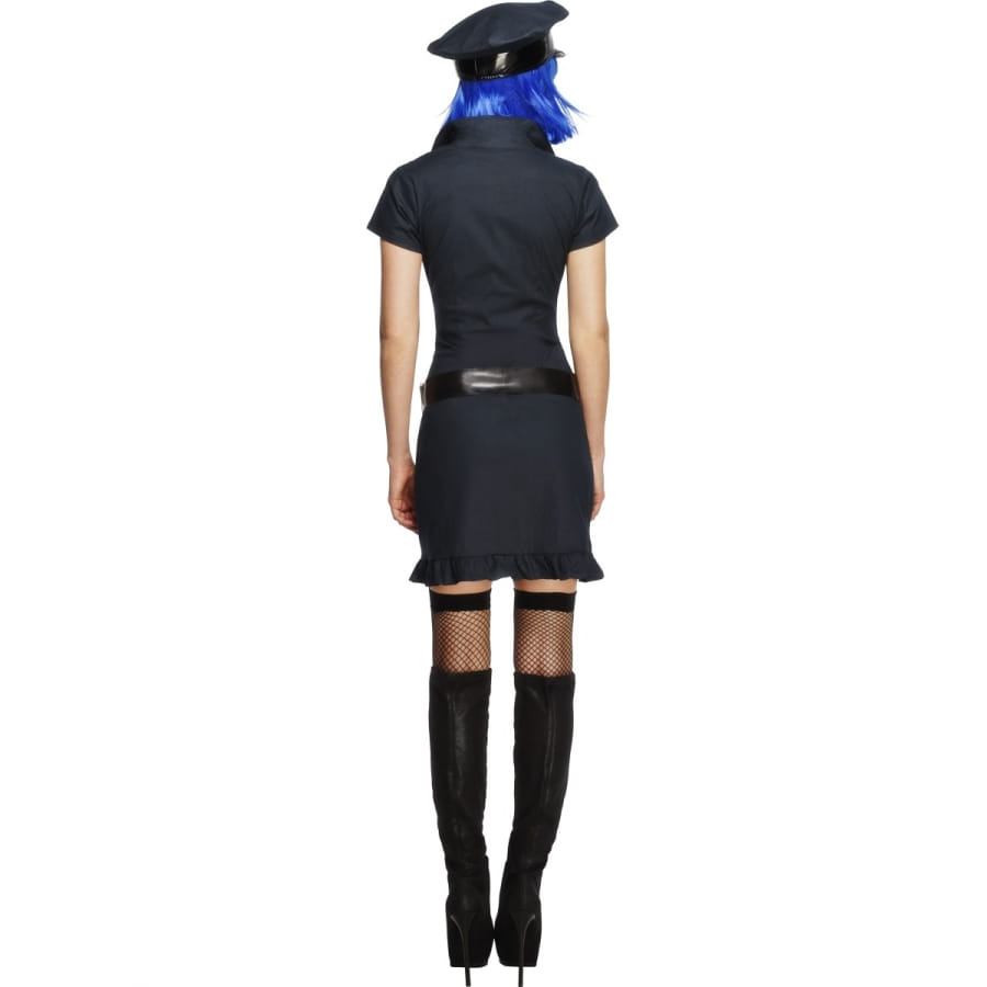 Ce costume de policière sexy pour femme est parfait pour une fête comme thème uniforme tout le monde aura les yeux rivé sur vous dans ce joli déguisement. Ce costume est composé d'une robe manche courte, cette robe décolleté est courte de couleur bleu, il est aussi composé d'un chapeau bleu ainsi que d'une ceinture noir.