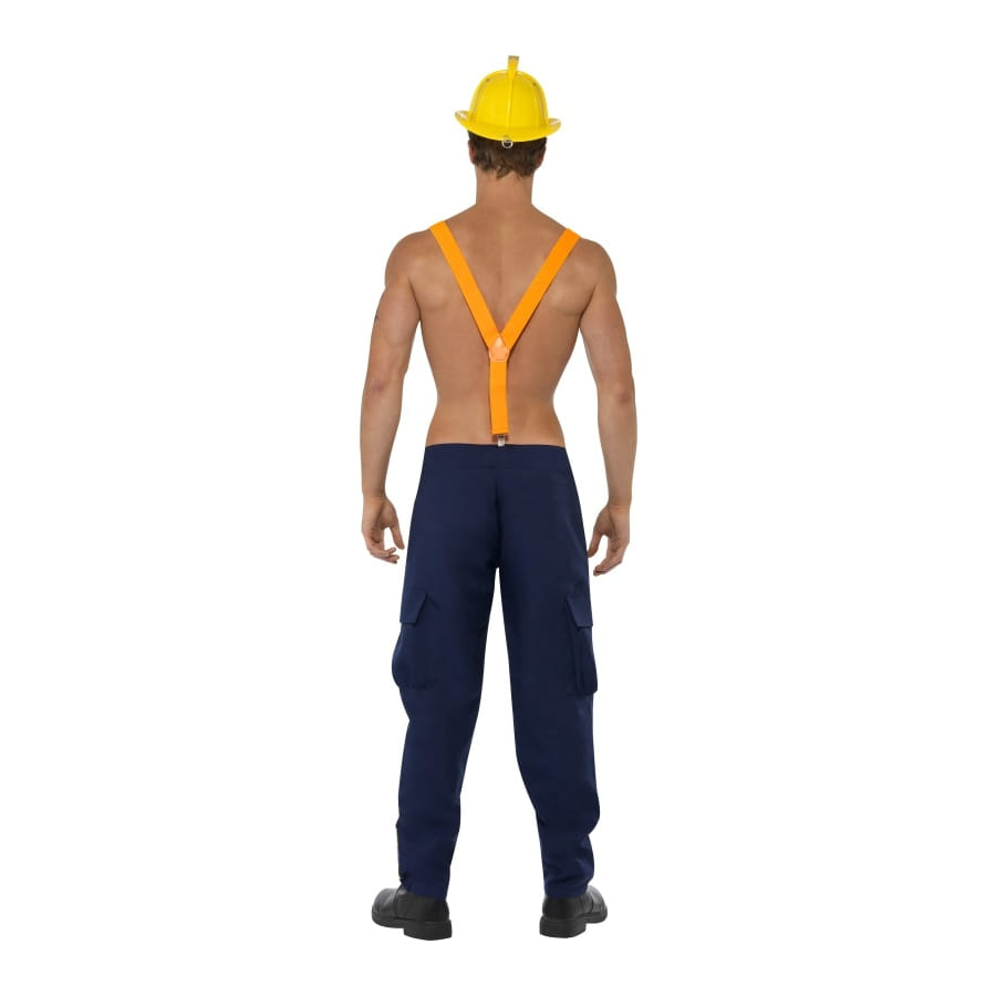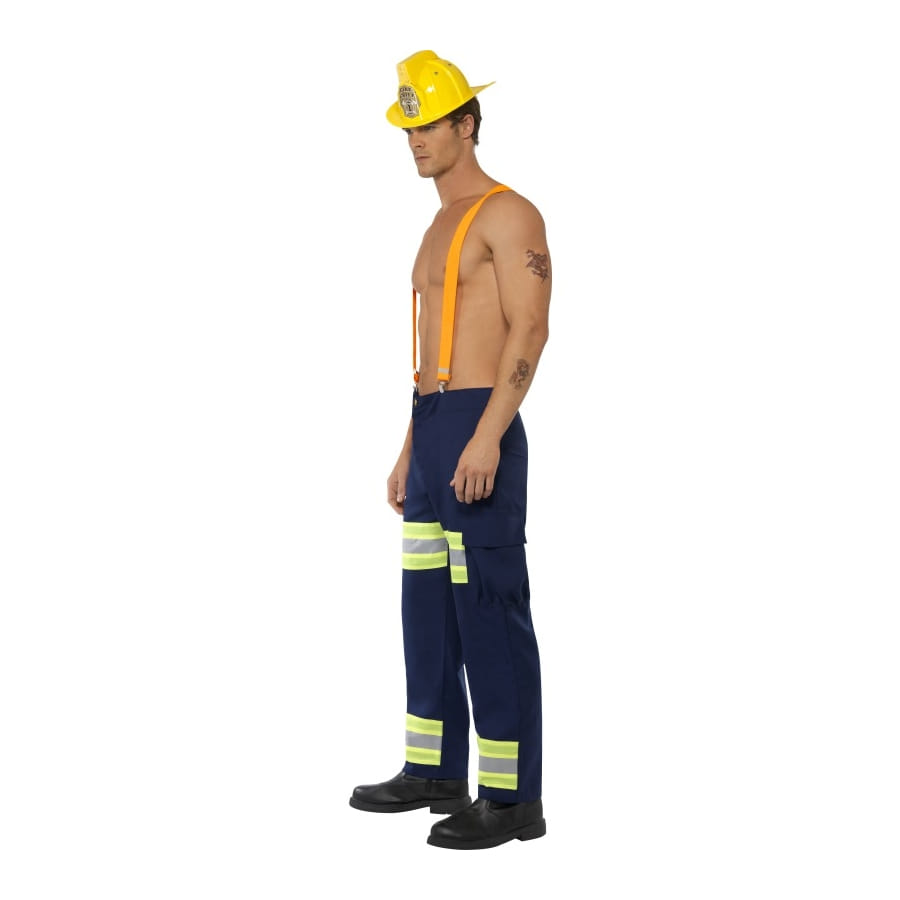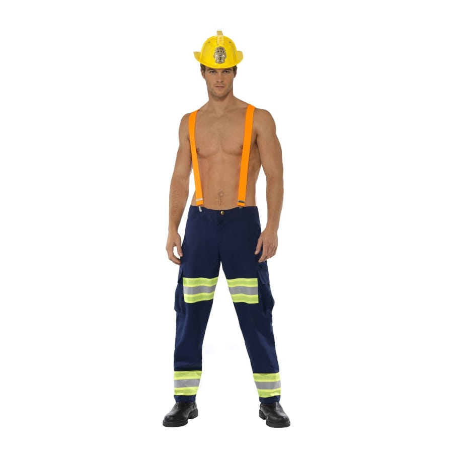Ce déguisement vous pourrez le porter pour un enterrement de vie de jeune fille ou de garçon. Ou si vous voulez pour le carnaval ou à une fête déguisée ayant pour thème uniforme. Ce déguisement est composé d'un pantalon bleu avec bandes argenté et jaune dessus ainsi que des bretelles orange.