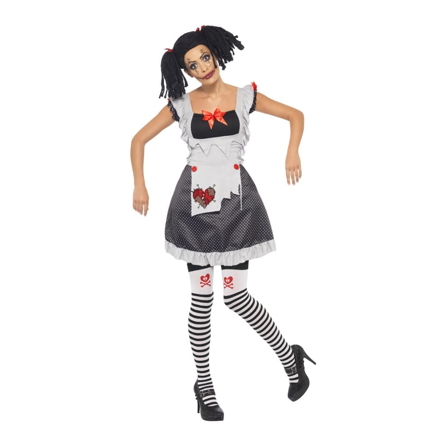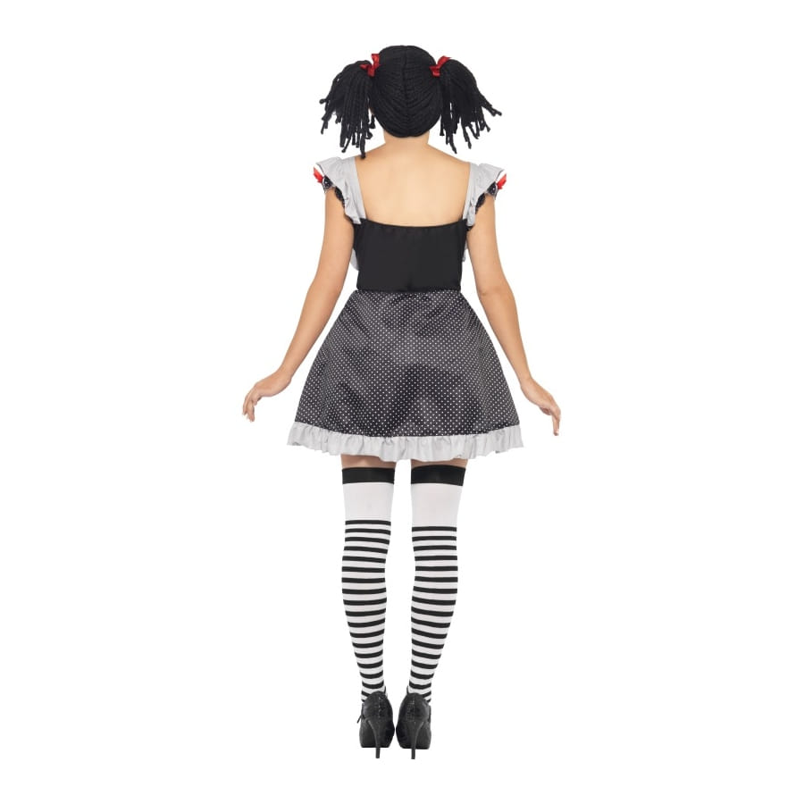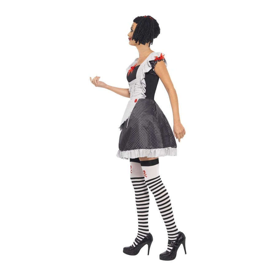 Déguisement de poupée Tokyo, pour femme, composé d'une robe avec tablier. La robe, de couleur blanche, noire et grise, comporte des volants et des noeuds rouges tandis que le tablier est imprimé de motifs gothiques. Cette robe est disponible en taille S, M ou L. Elle fera de vous une poupée effrayante, typique du Japon.