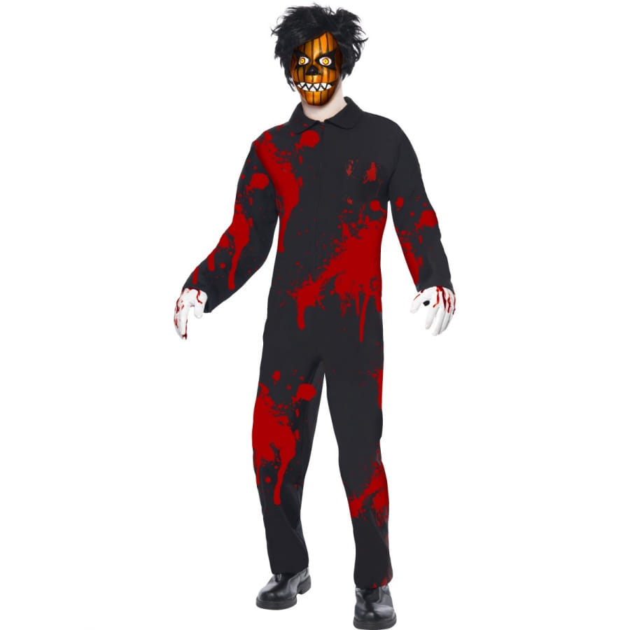 Déguisement de poupée citrouille vivante, pour homme ou adolescent, composé d'une combinaison noire et rouge et d'un masque en forme de citrouille orange terrifiant. Semez la terreur parmi les voisins et vos amis avec ce déguisement complet.