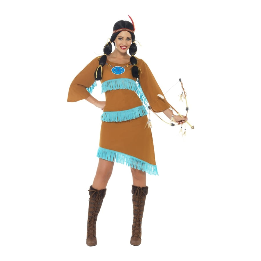 Cette robe vous pourrez le porter pour un thème comme autour du monde vous incarnerez une ravissante indienne. Ce déguisement vous pourrez aussi le porter pour le carnaval. C'est une robe manche longue de couleur marron avec des franges dessus.