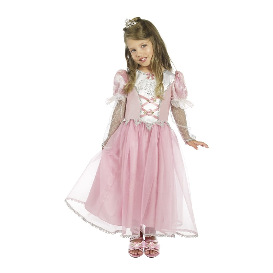 Déguisement de princesse royale de couleur rose, pour fille, composé d'une robe avec lacets et tulle. Elle est disponible en taille S, M ou T2. Votre enfant sera magnifique avec ce déguisement de princesse féerique.